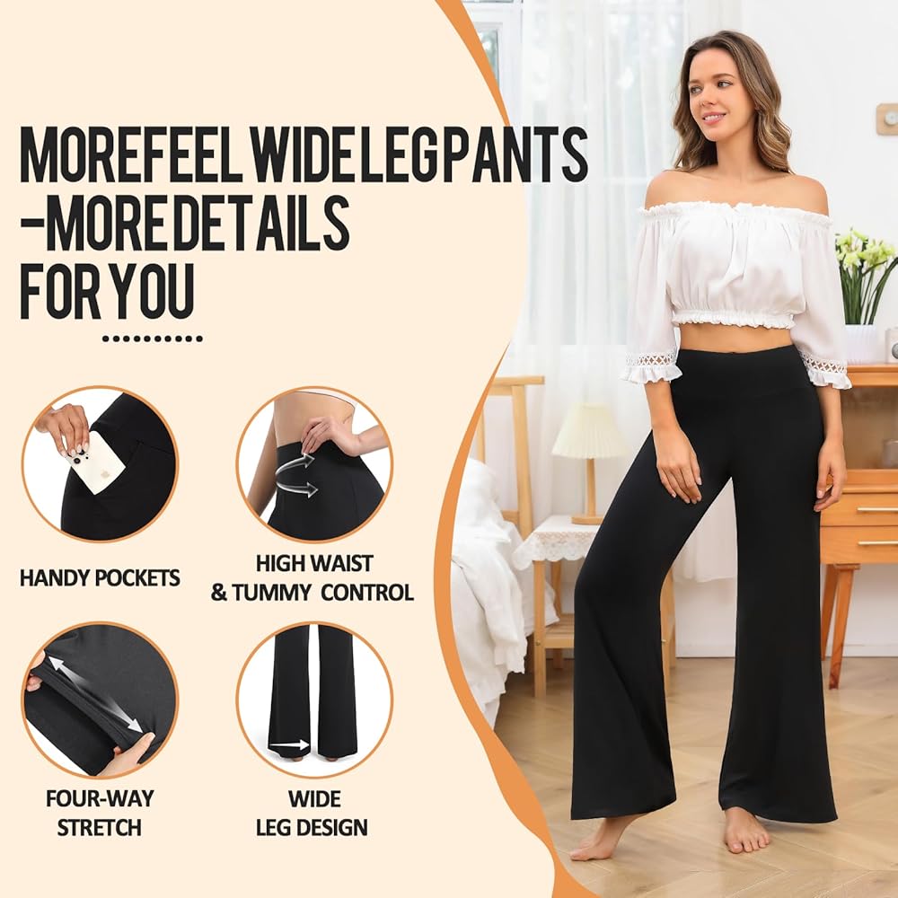 ✅ الراحة والأناقة - سوف تحب السراويل ذات الأرجل الواسعة ذات الجيوب بمجرد ارتدائها وستستمتع بمزيج مثالي من النعومة والتمدد. تتميز سراويل بالازو النسائية بحزام عريض قابل للتمدد يمنع الضيق، مما يجعلها مناسبة للارتداء لفترة طويلة دون ترك علامات على خصرك. مع تصميم أنيق ومتجدد الهواء وساق واسعة متدفقة. دع النساء يستمتعن بالملمس المريح الذي توفره سراويلنا.