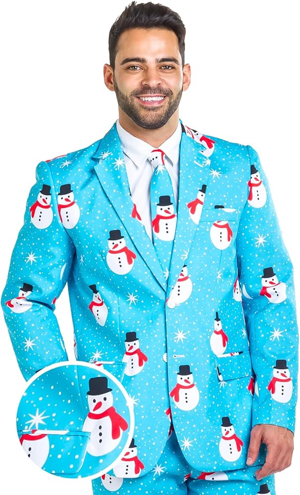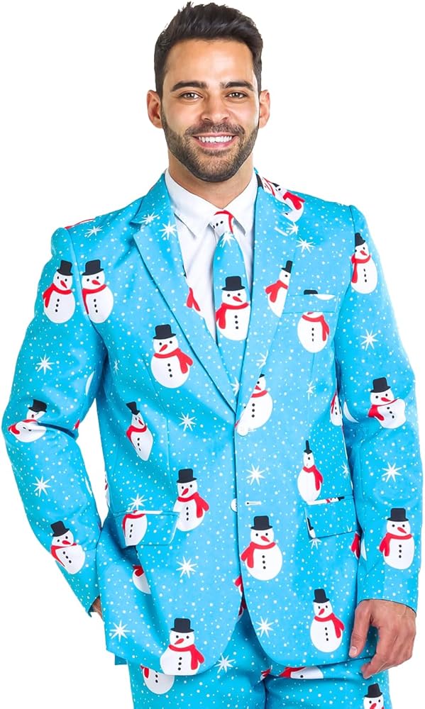 Don't wait to share the love and laughs! You and your friends and family can help spread the cheer in one of Tipsy Elves' ugly christmas sweater inspired men's suits. Whether you're celebrating and matching in person or just catching up online, Tipsy Elves' hilarious holiday clothing will keep everyone looking cute, cozy and warm!