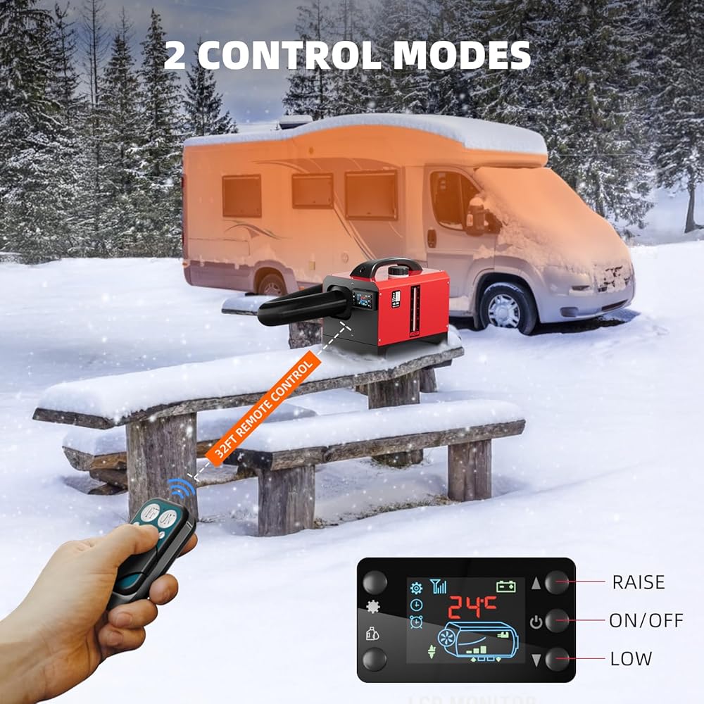 التحكم الذكي: مزود بشاشة LCD ذكية وجهاز تحكم عن بعد، فإن سخان الديزل الخاص بنا يوفر لك تجربة تشغيل مريحة غير مسبوقة. من خلال شاشة LCD الواضحة والبديهية، يمكنك بسهولة عرض وتعيين معلمات مختلفة للسخان، مثل درجة الحرارة ووضع التشغيل وما إلى ذلك. يتيح لك جهاز التحكم عن بعد ضبط السخان بحرية على مسافة معينة دون الحاجة إلى النهوض. سواء كنت تستريح في السرير أو تسترخي على الأريكة، يمكنك بسهولة التحكم في الدفء