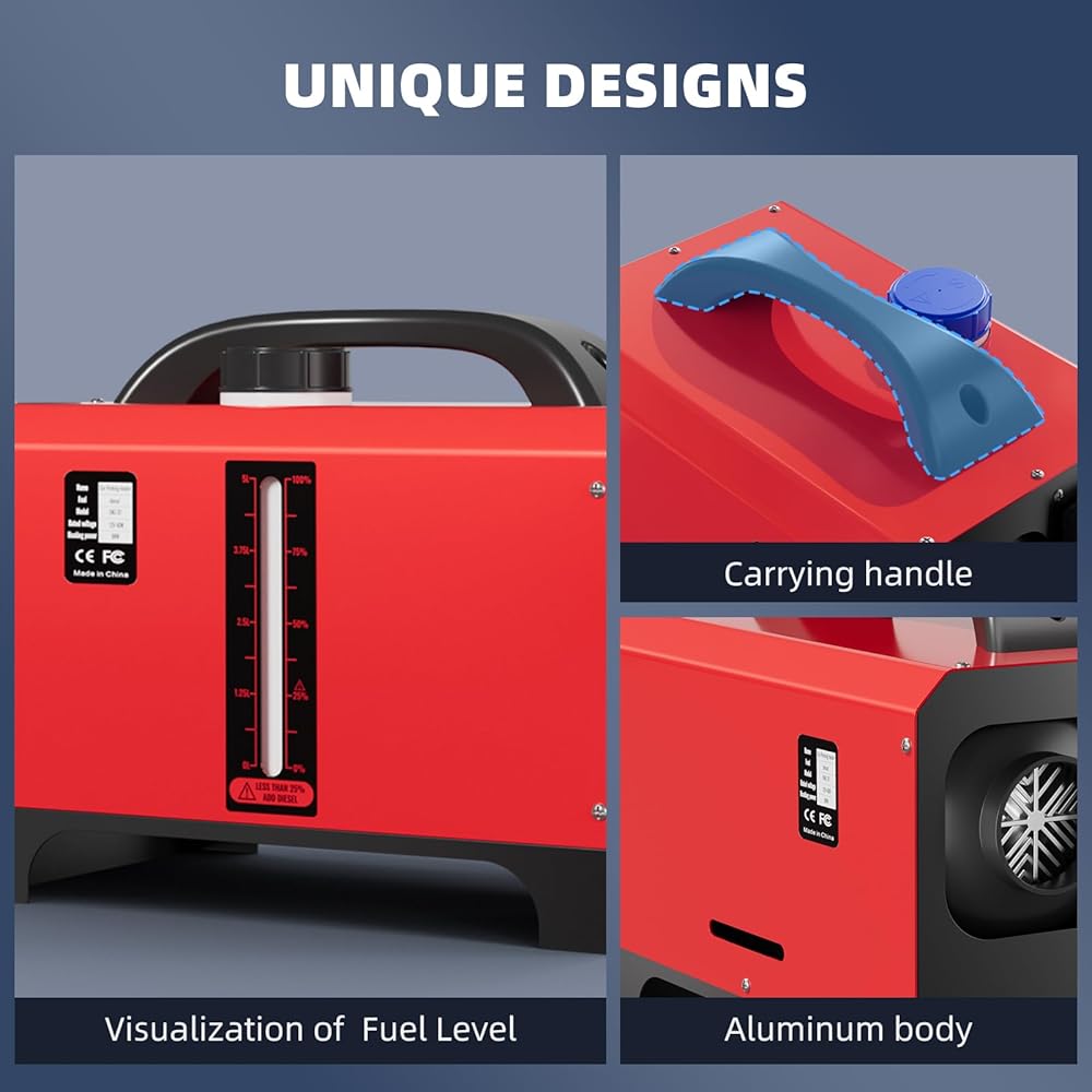 التسخين السريع: يتميز سخان الديزل الخاص بنا بقدرات تسخين سريعة متميزة. إنها تعتمد مبادل حراري من الألومنيوم المسفوع بالرمل بقدرة 5KW، ويمكنه إنتاج ما متوسطه 4,700 إلى 17,000 BTU من الحرارة. يمكنها تسخين مساحة 215 - 269 قدم مربع (20 - 25 مترًا مربعًا) خلال 10 دقائق وتغطية البيئة المحيطة بالكامل