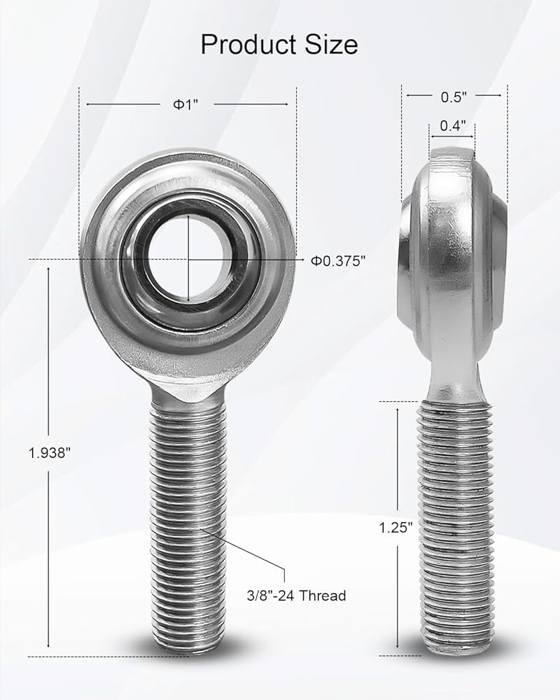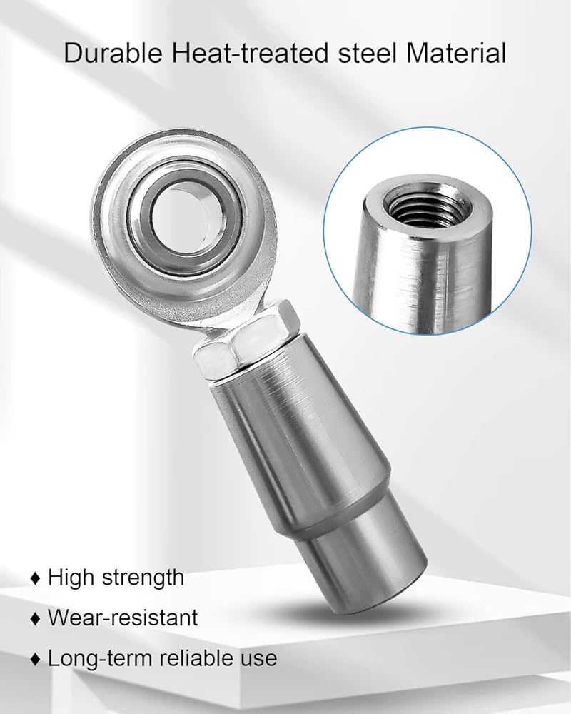 Durable Material: Heat-treated C1045 steel, silver zinc coating, the rod end ball is 52100 bearing steel with a hard chrome coating for extreme durability and a load carrying capacity of up to 7,605 pounds