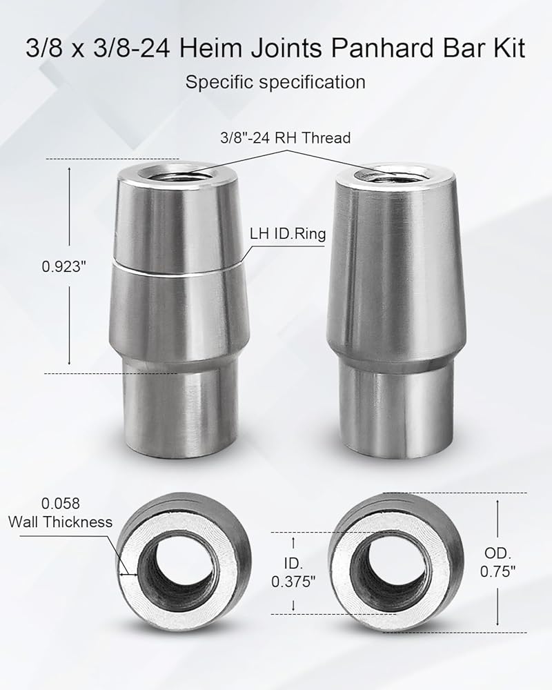 2 Set 3/8 x 3/8-24 Heim Joints Rod End Kit,.058 Heim Joint Panhard Bar Kit LH + RH,Economy Bungs Rod End Heim Joint Kit with Tube Adapters and Jam Nuts
