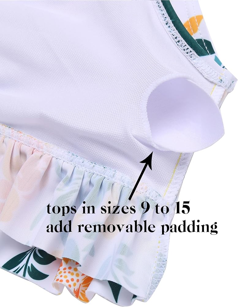 الميزات: متوفر في 7 مقاسات للفتيات من سن 4 إلى 15 عامًا. قميص تانكيني بحاشية مكشكشة، طراز بدون أكمام، يمكن ارتداؤه بسهولة، بطانة كاملة بنسيج ناعم في الجزء السفلي من البكيني والجزء العلوي من البيكيني، يوفر الراحة والشعور بملمس الجلد للأطفال أثناء السباحة أو اللعب.
