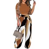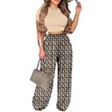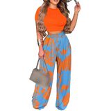 【PACKAGE】: (1 Wide Leg High Waist Long Pants +1 Short Sleeves Front Crop Tops)2 piece outfits.
