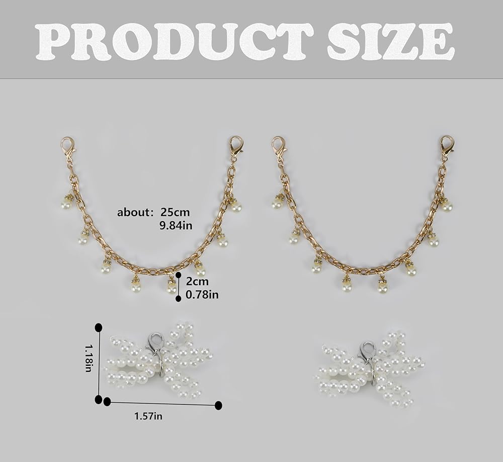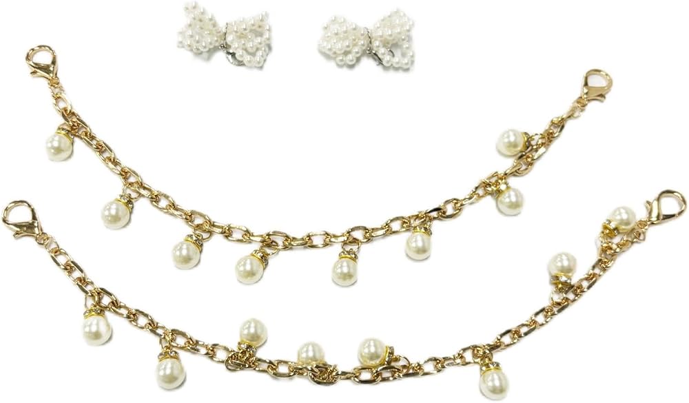 PACKAGE INCLUDE:Come with 1pair of pearl bow sneaker ornaments,1pair of pearl shoe chain,this pearl bowknot shoes decoration decor and upgrade your footwear (sneakers, flats, pumps, sandals, boots, etc.)