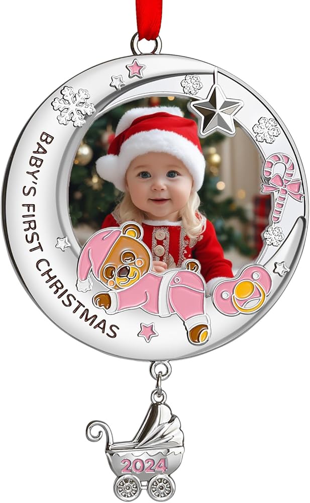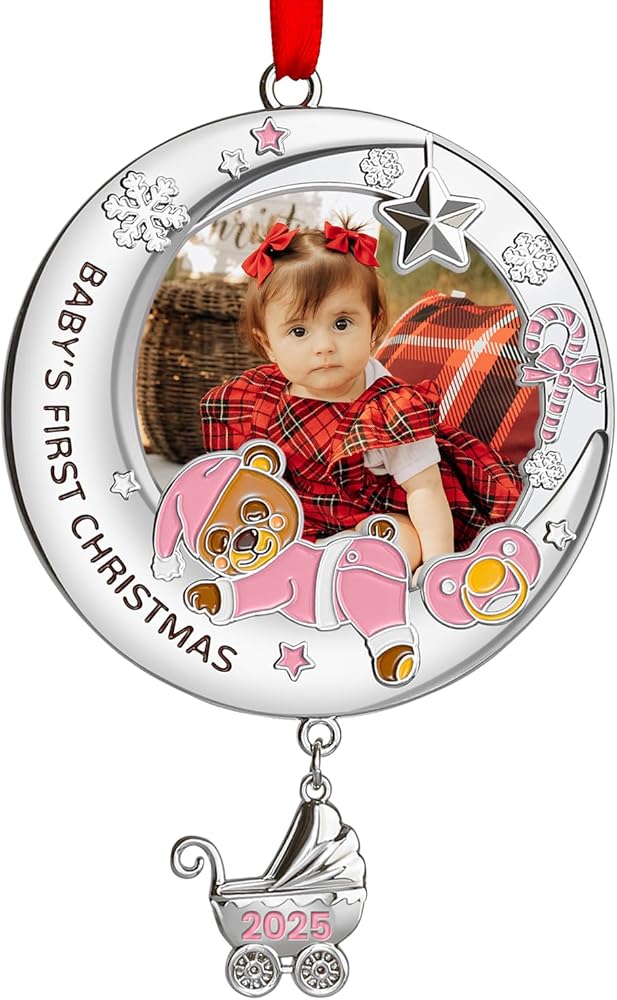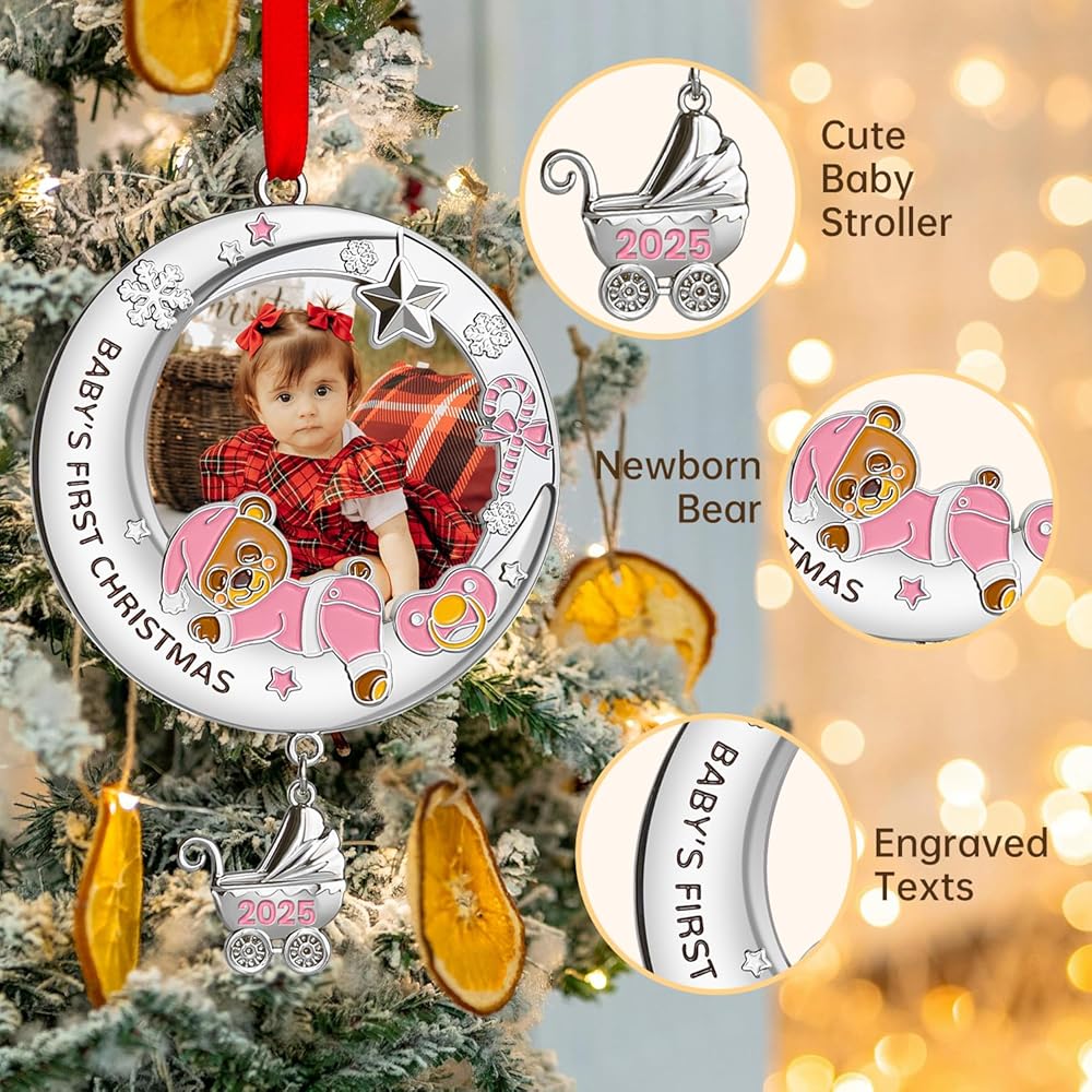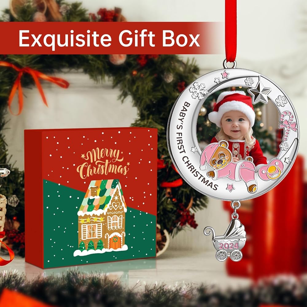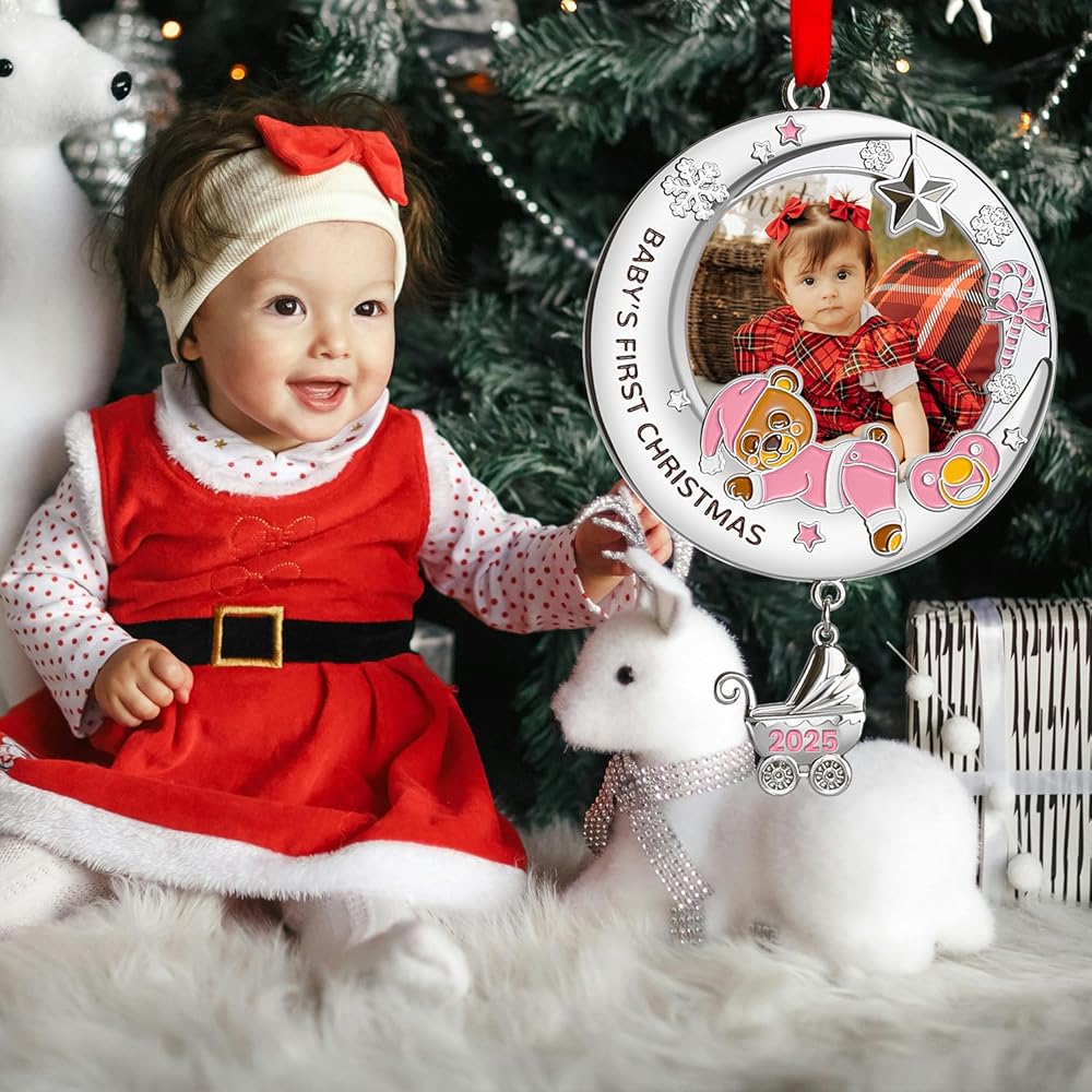 زينة عيد الميلاد الأولى للأطفال 2024 فتاة - زينة إطار صورة عيد الميلاد الأولى الخاصة بي، زينة صور عيد الميلاد الشخصية - هدايا تذكارية لحديثي الولادة لعيد الميلاد الأول للطفل