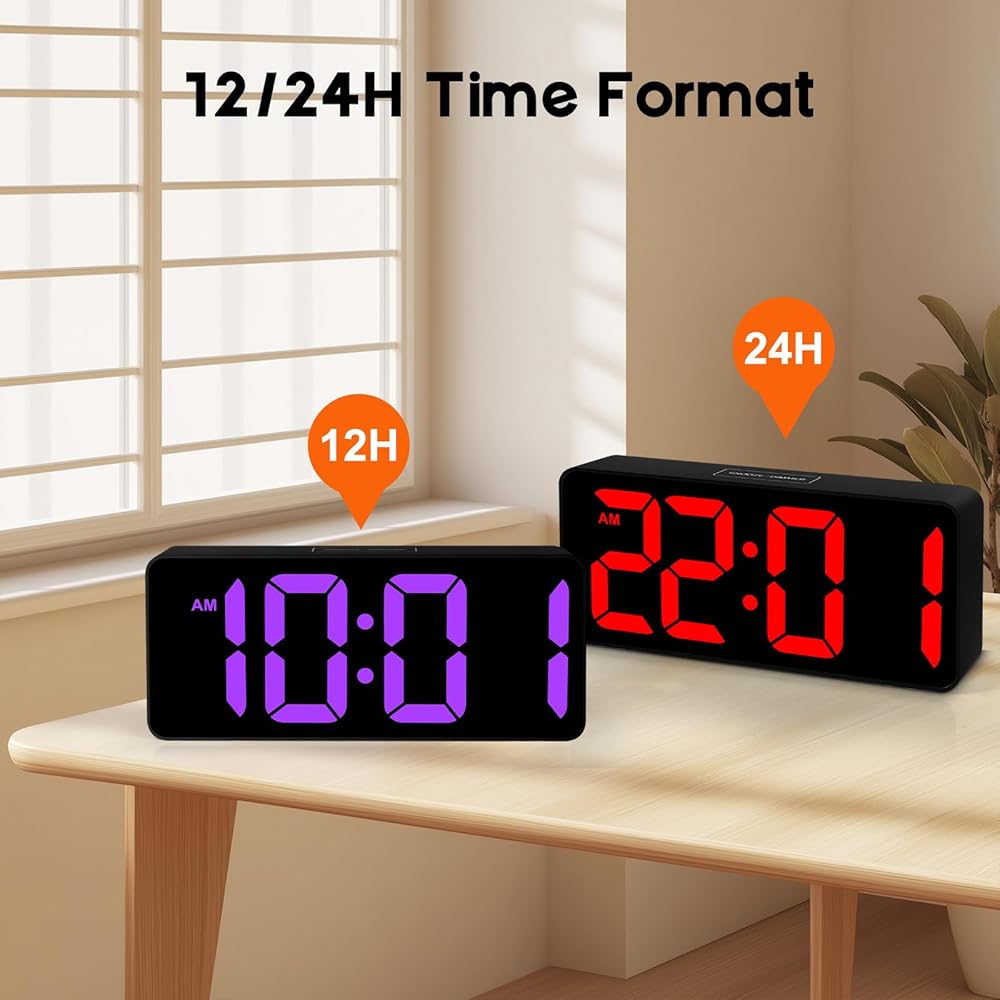 ساعة منبه رقمية صغيرة لغرفة النوم، شاشة عرض أرقام كبيرة كبيرة مع سطوع خافت، منبه مزدوج، قيلولة بعد الظهر، 12/24 ساعة، ساعة منبه عالية الحجم قابلة للتعديل بجانب السرير للأطفال والمراهقين والأولاد والبنات (أسود)