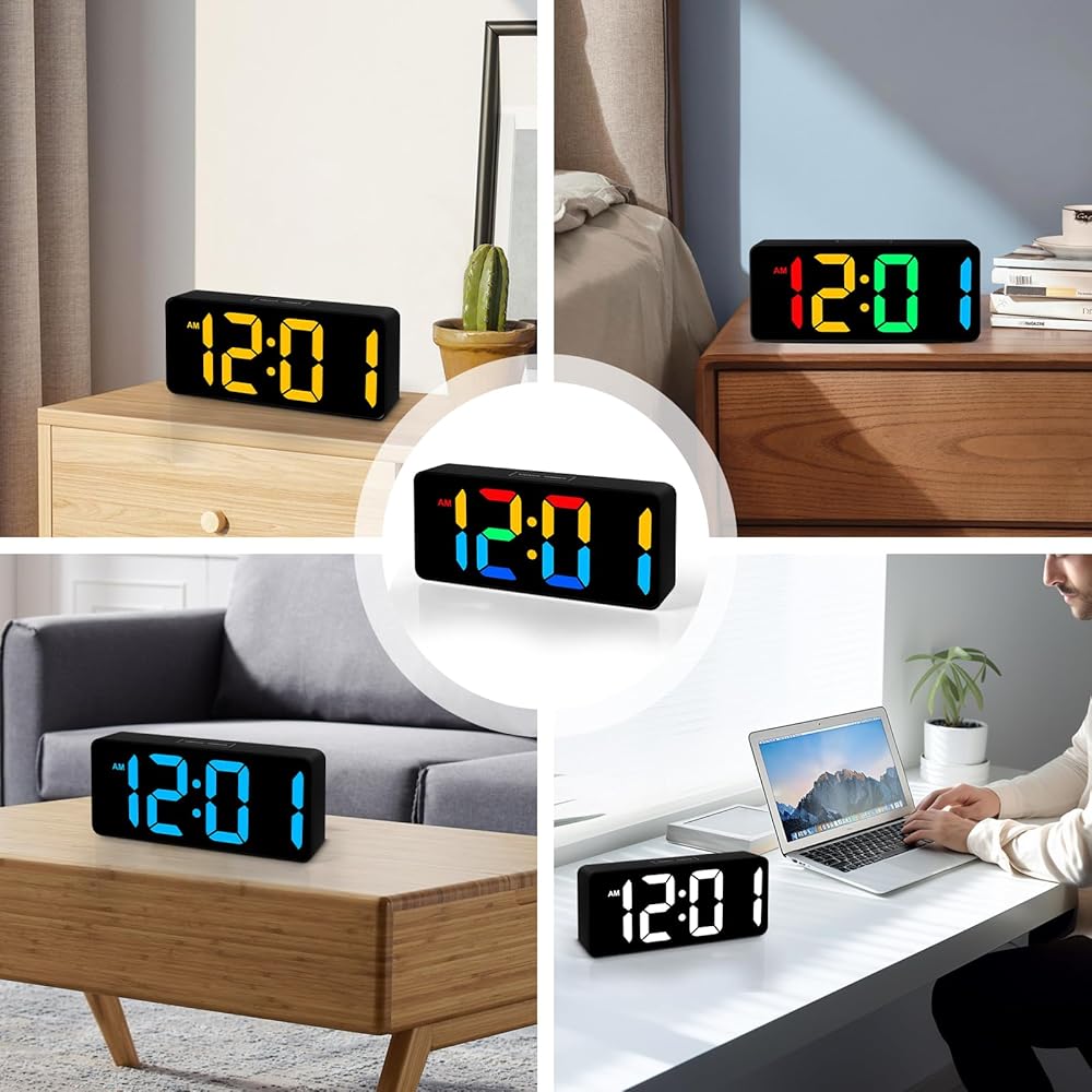 منبهات RGB لغرف النوم: مع 11 تأثيرًا ضوئيًا ملونًا، يمكنك بسهولة ضبط الألوان حسب التسلسل المفضل لديك. سواء كنت تريد إضاءة ليلية لطيفة أو إضافة ملونة إلى غرفتك، فإن ساعتنا ستلبي احتياجاتك. قم بإنشاء أجواء جميلة وهادئة في مساحة نومك مع ضوء RGB الليلي النابض بالحياة.