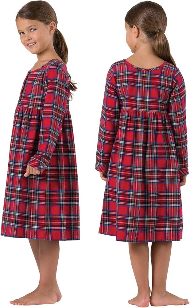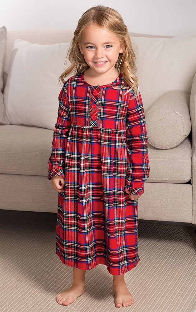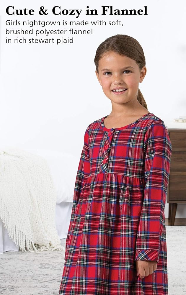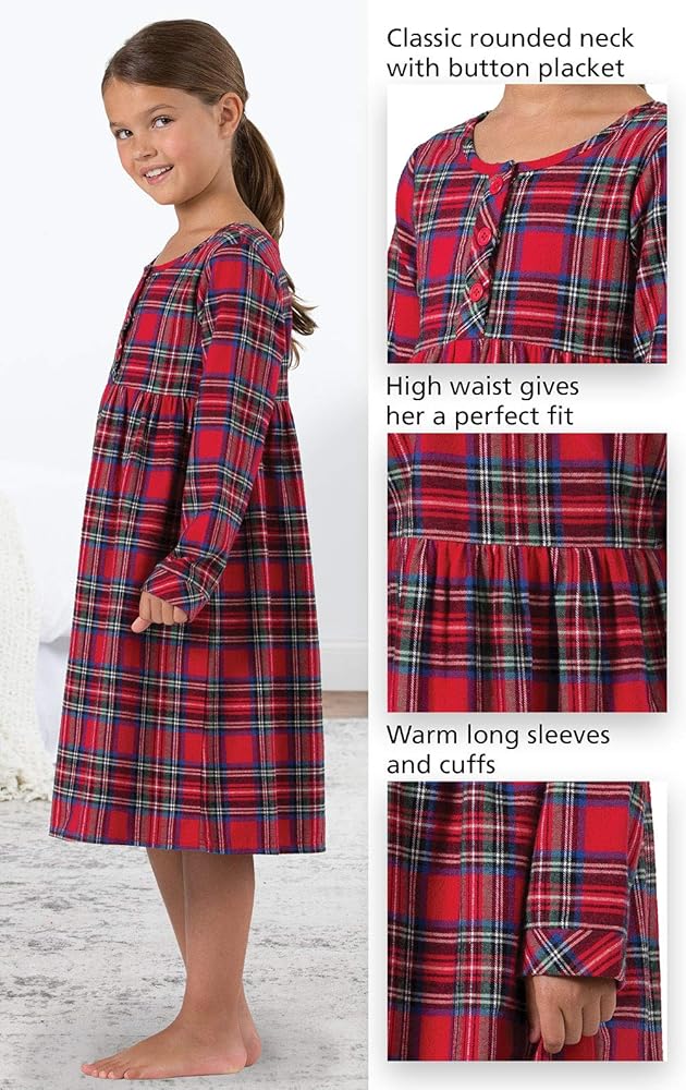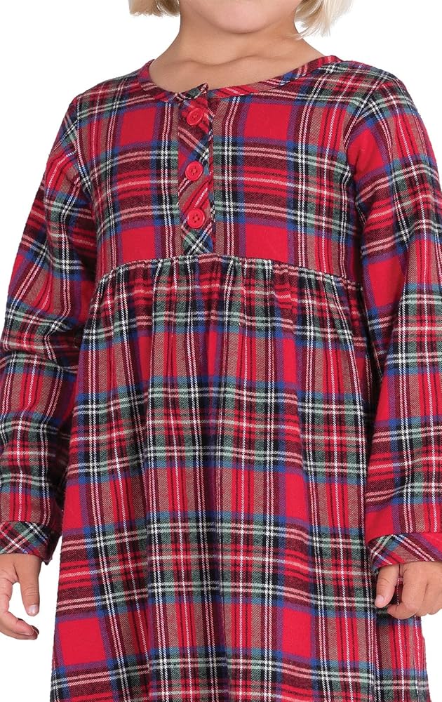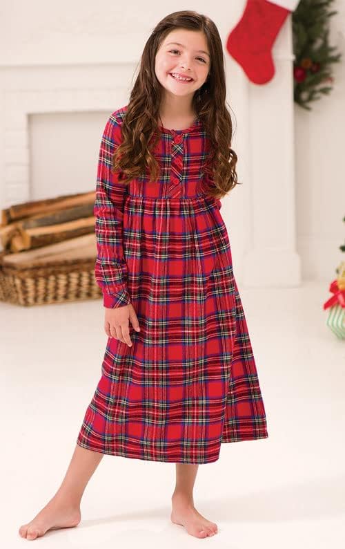 ثوب نوم بيجاماجرام للفتيات لعيد الميلاد - ثوب نوم للفتيات من الفلانيل، أحمر منقوش
