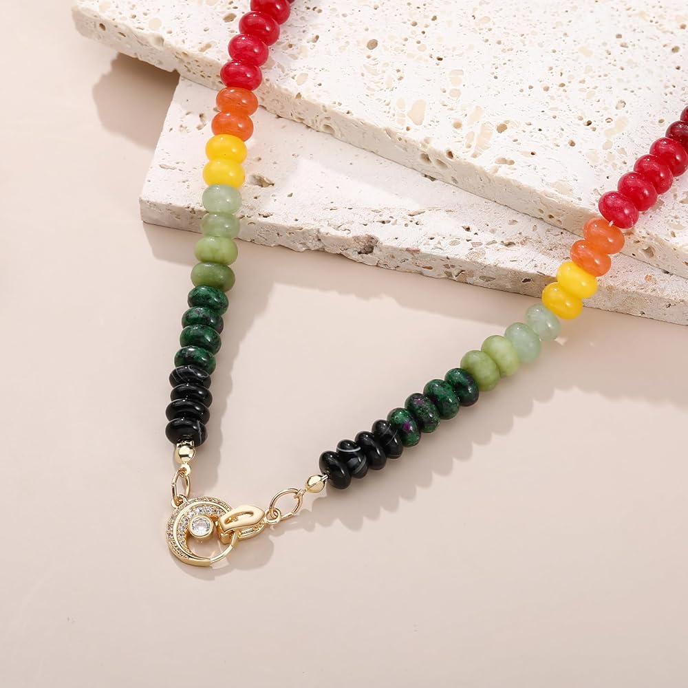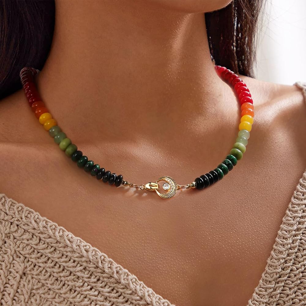 متعددة الاستخدامات لأي مناسبة: سواء كنت ترتديها مع خزانة ملابسك اليومية أو ترتديها في مناسبة ما، فإن هذه القلادة المصنوعة من الحجر الطبيعي تضيف لمسة من الألوان والأناقة إلى أي مظهر. لوحة الألوان المتنوعة والتصميم الأنيق يجعلها مناسبة لكل من المناسبات الرسمية. المناسبات والتجمعات المريحة.