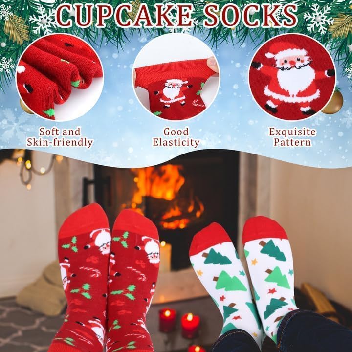 خامة عالية الجودة: جوارب عيد الميلاد على شكل كب كيك مصنوعة من مواد قطنية موثوقة، مما يوفر نعومة وراحة ممتازة لساعات طويلة من الارتداء. هذه الجوارب جيدة التهوية وخفيفة الوزن لتمنحك الراحة والدفء أثناء مشاهدة أفلامك المفضلة