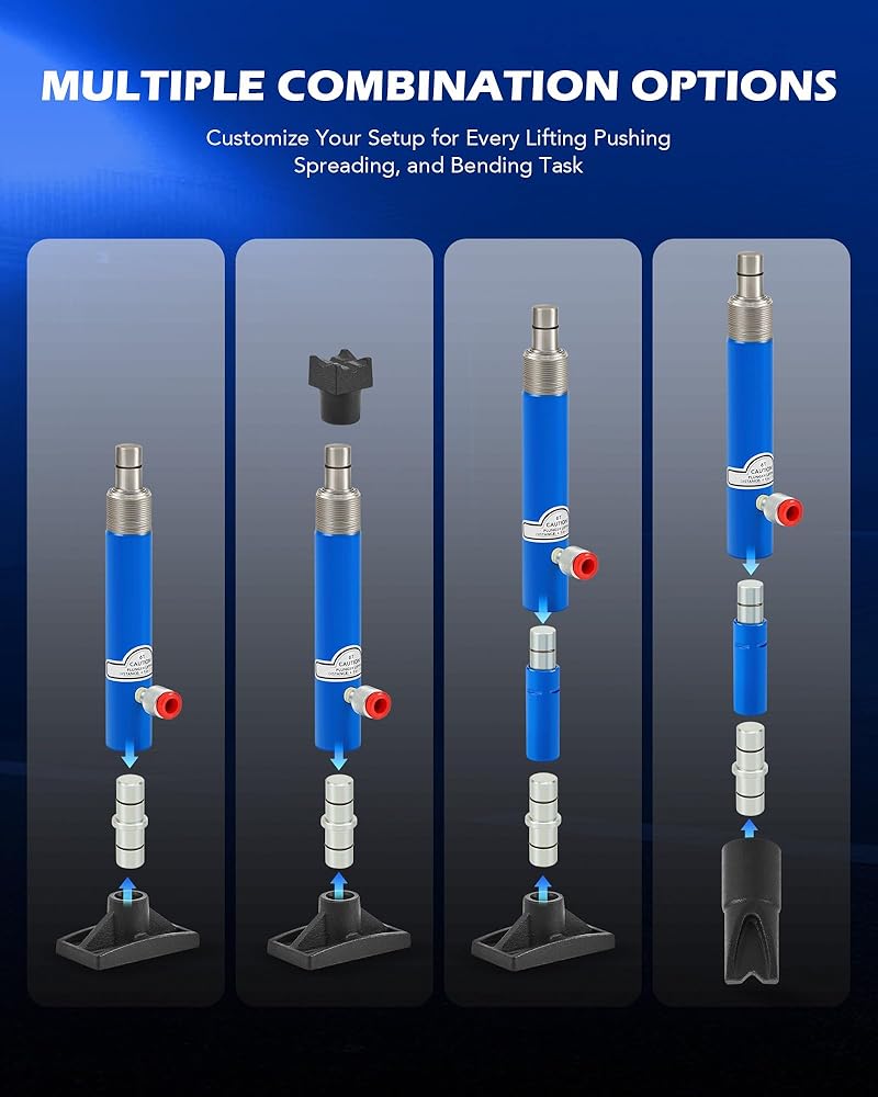 خيارات الجمع المتعددة: تشتمل مجموعة الطاقة الهيدروليكية هذه على 4 أنابيب تمديد و5 ملحقات للكبش، مما يوفر مجموعات متعددة الاستخدامات للتعامل بسهولة مع مجموعة متنوعة من مشاريع الرفع والدفع والانتشار والانحناء
