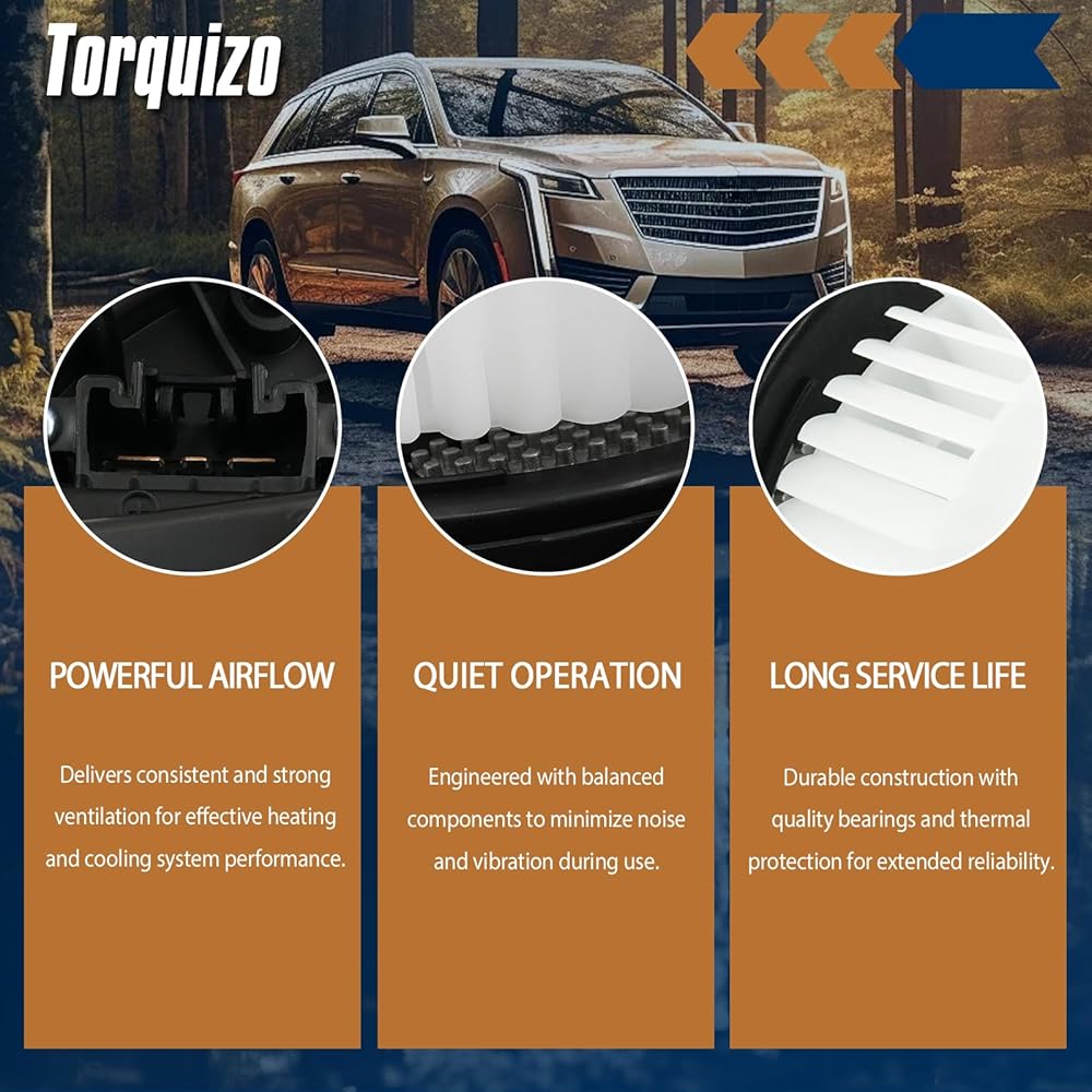 REPLACEMENT HVAC BLOWER MOTOR WITH FAN: Essential for producing airflow through your vehicle's AC and heating system. If your AC or heater isn't circulating heated or cooled air, a faulty blower motor may be the issue. This replacement blower motor by Torquizo includes the fan, so you can get your system running smoothly again.