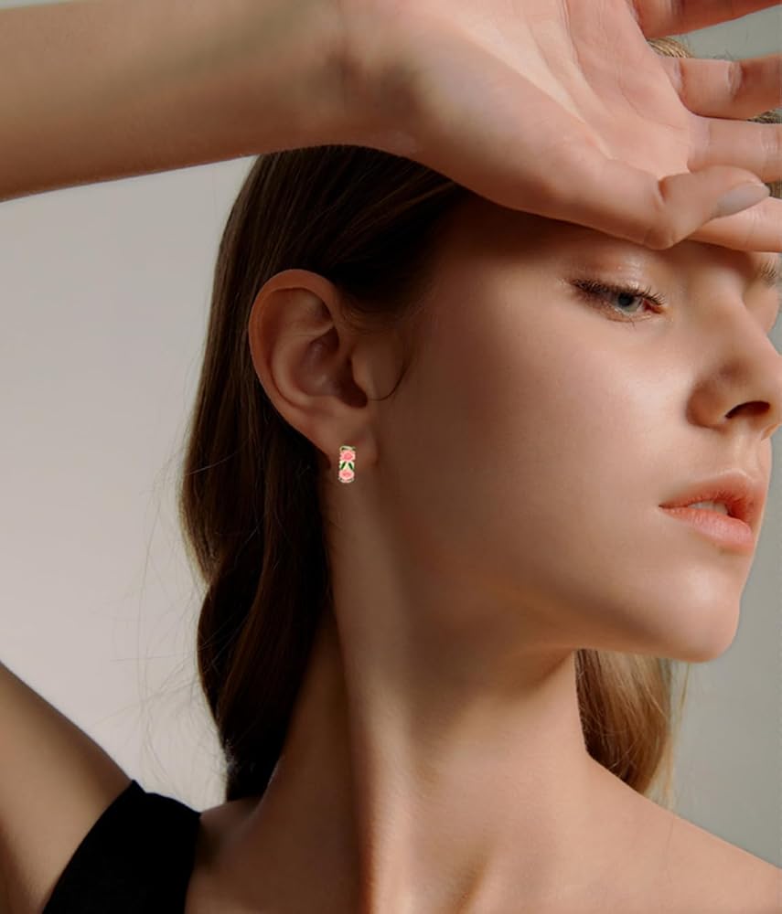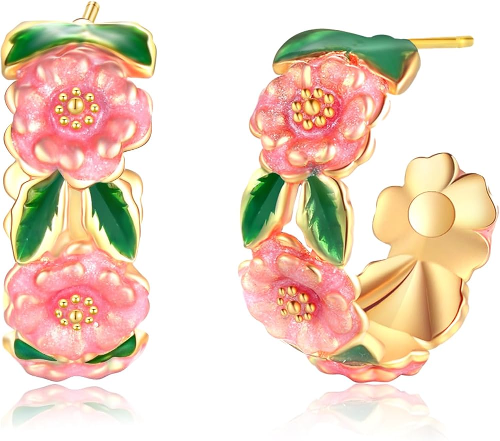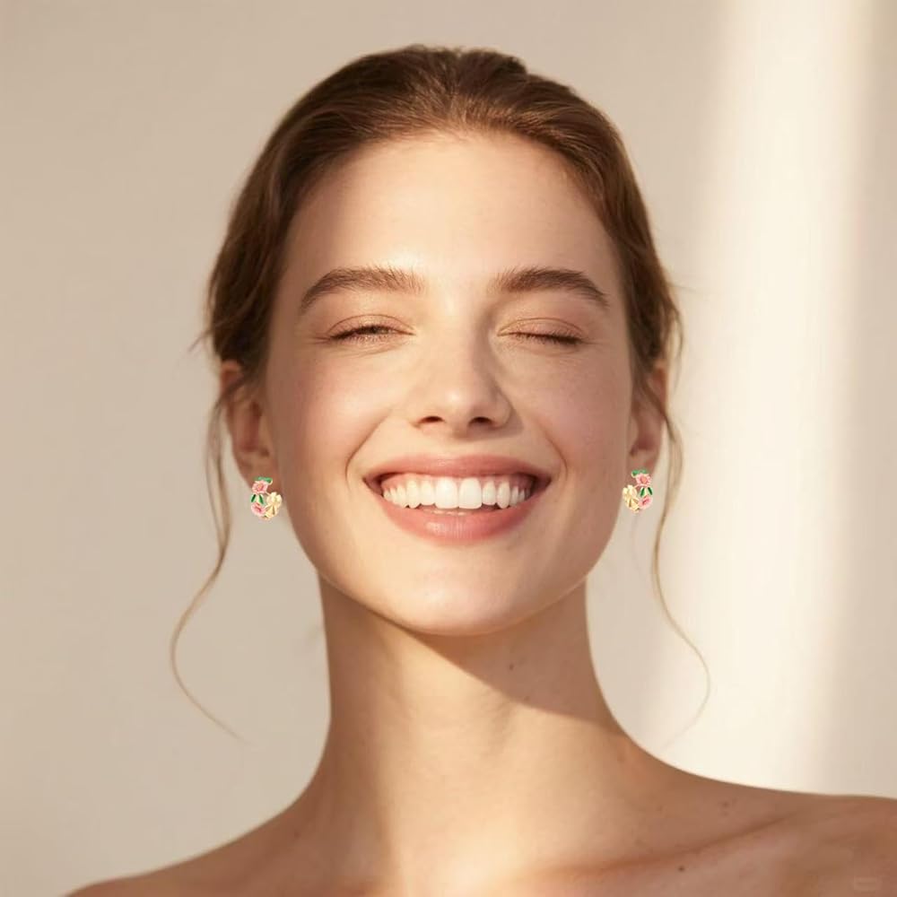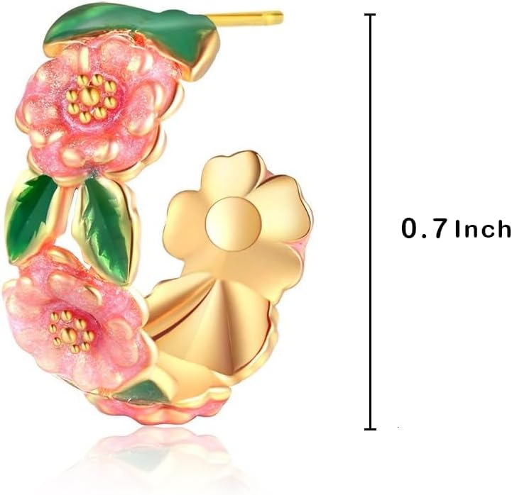 - 【أقراط】 - أقراط دائرية على شكل زهور وردية ملونة عتيقة للارتداء اليومي، والعطلات، والحفلات