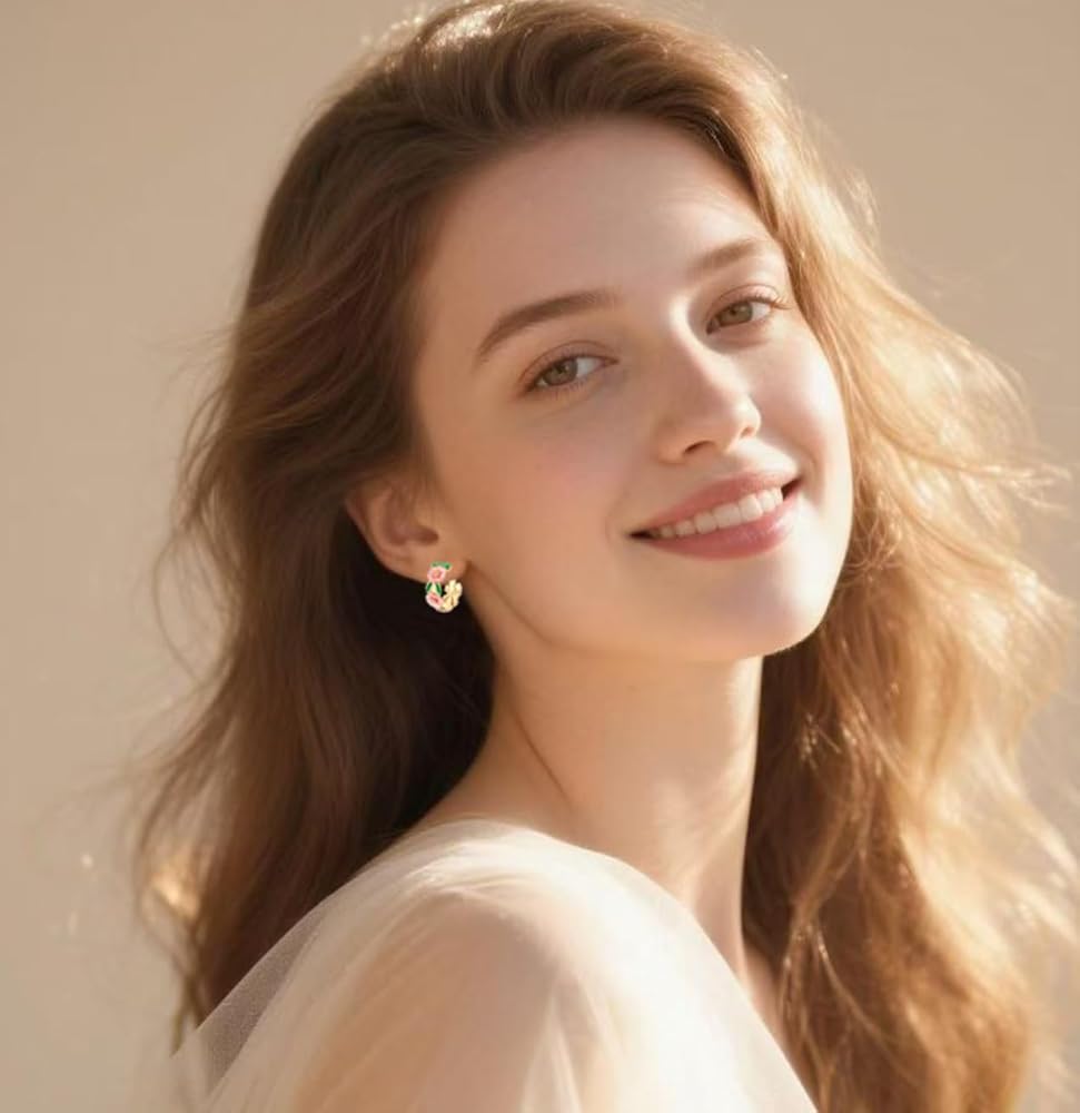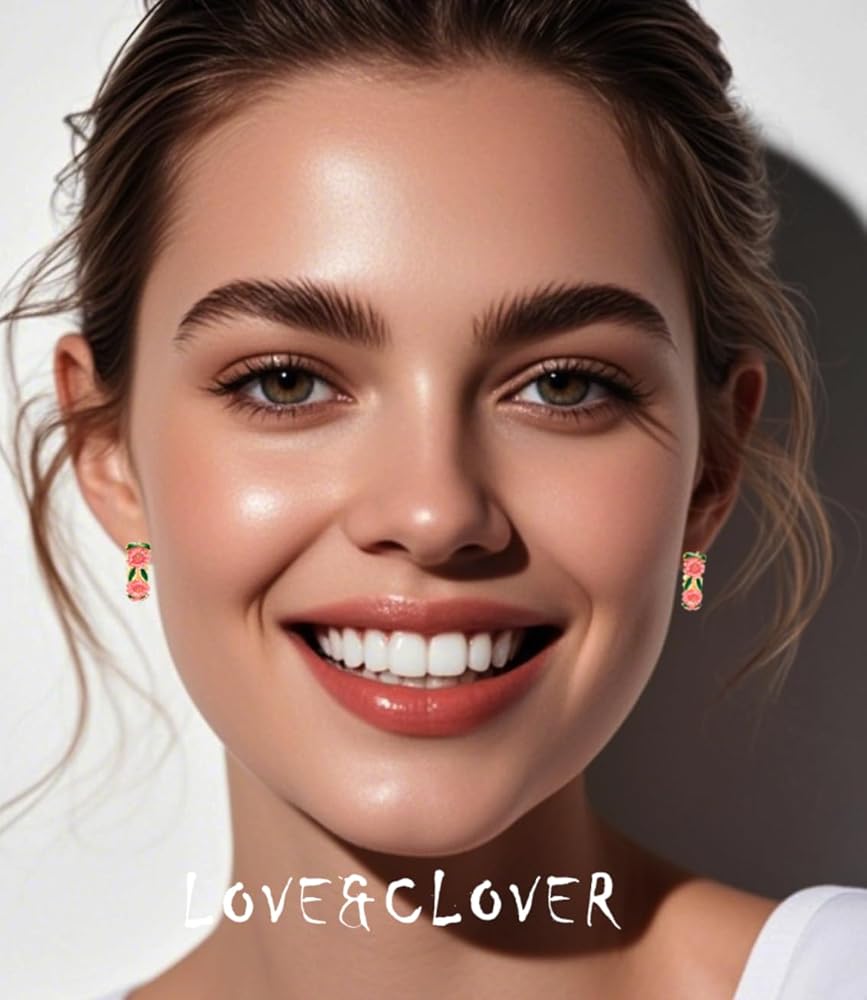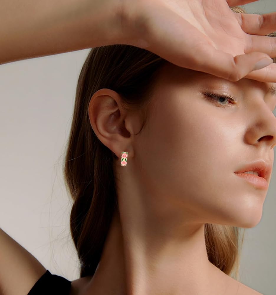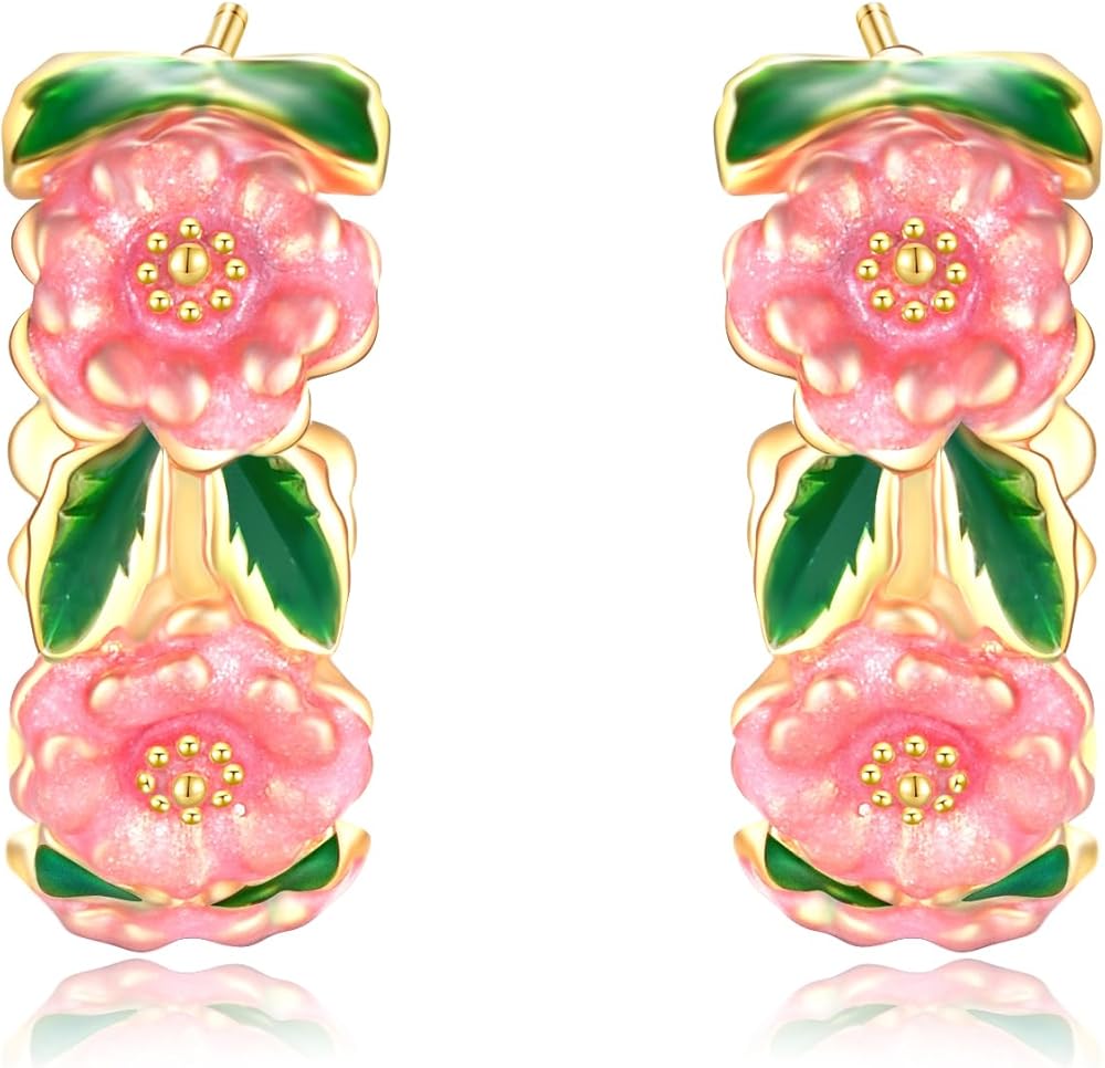 - 【أقراط】 - أقراط دائرية على شكل زهور وردية ملونة عتيقة للارتداء اليومي، والعطلات، والحفلات