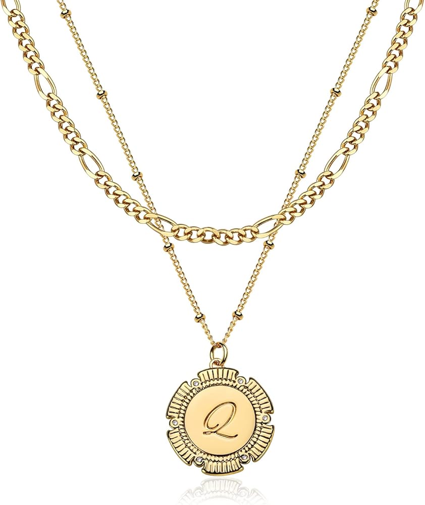 Material: The initial necklace engraved with alphabet(from A to Z),14k Gold Plated over brass, Nickle-free, lead-free, and designed with low allergenicity, hypoallergenic Layered charm necklace, minimalism style, small coin pendant necklace