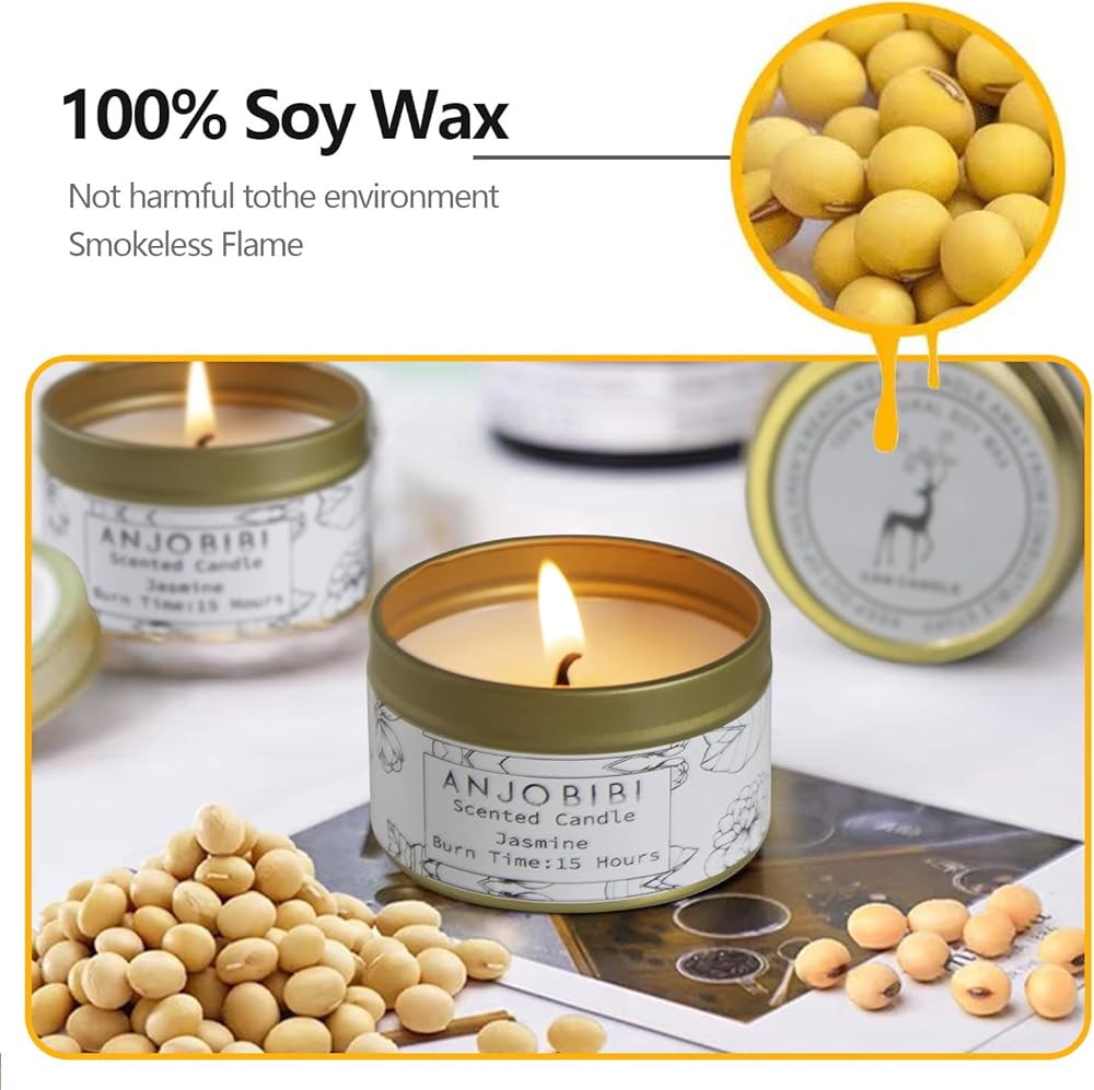 Jasmine Scented Candle Gifts for Women (2 PACK) - 2 Oz - 15 Hour Burn Time Long Lasting Candle,All Natural, soy candles , Soothe