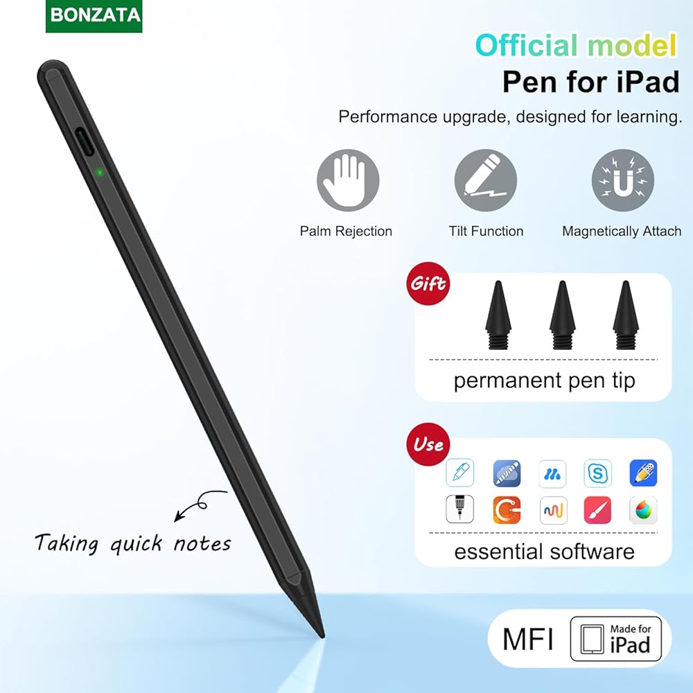 DESIGNED FOR APPLE IPAD — Stylus Pen for iPad is exclusively designed for iPad models from 2018 to 2022, ensuring significantly enhanced performance compared to general stylus pens. iPad Pencil compatible with iPad (6/7/8/9/10 Gen), iPad Air (3/4/5 Gen), iPad Pro 12.9" (3/4/5/6 Gen), iPad Pro 11" (1/2/3/4 Gen), and iPad mini (5/6 Gen).