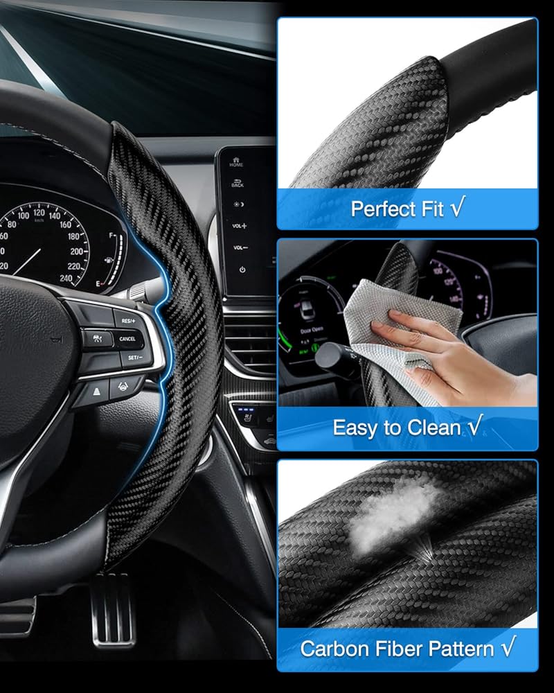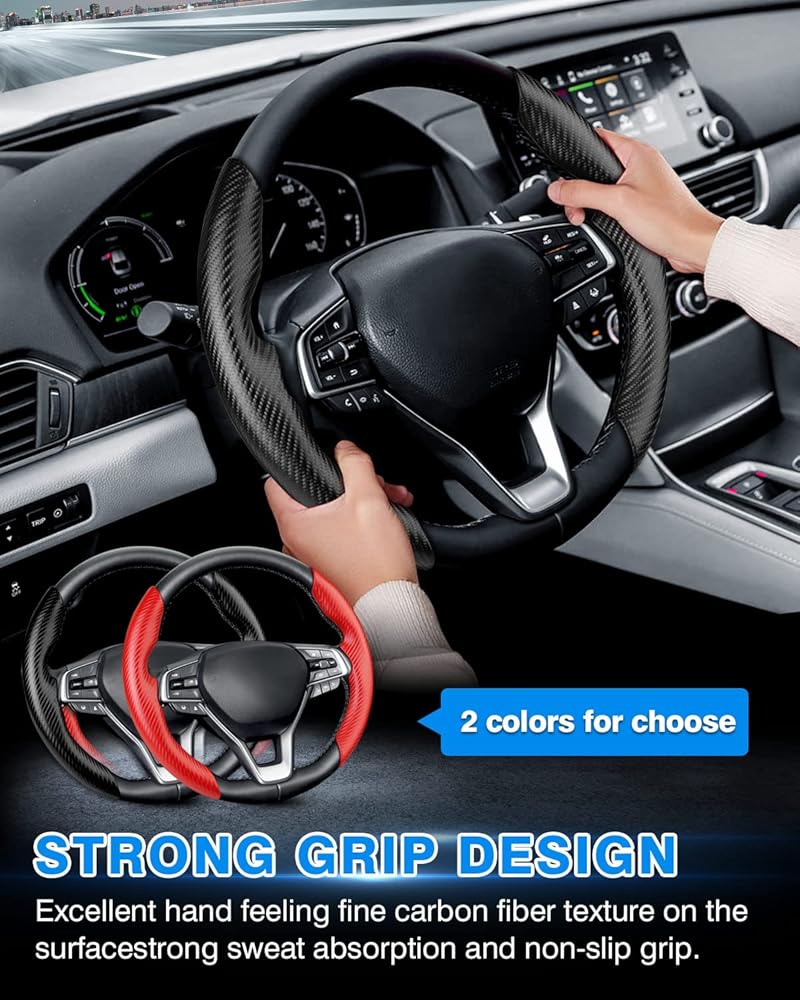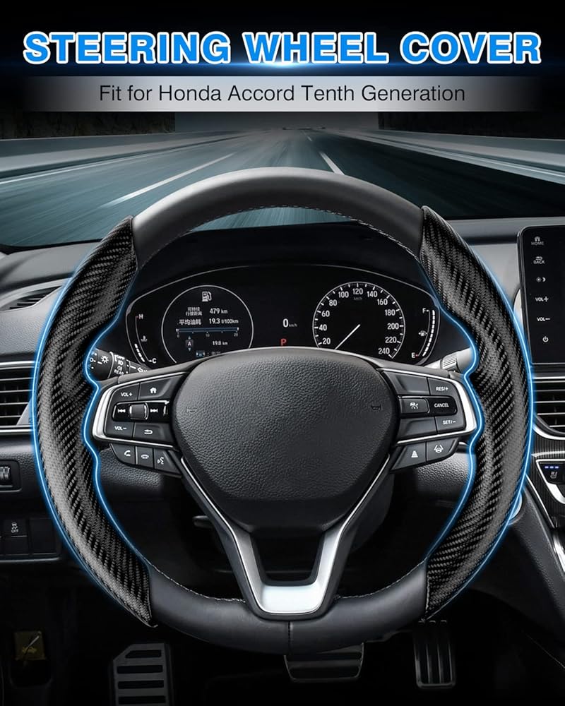 【2024 Newly Design&Excellent Grip】:The Honda Accord carbon fiber steering wheel cover, ultra thin and light,provides you excellent grip while driving. Unique carbon fiber pattern and texture will massage your palm and relieve driving fatigue,bring you a great touch and feel. Super cool carbon fiber steering cover, really give you a better touch and control to the steering wheel.