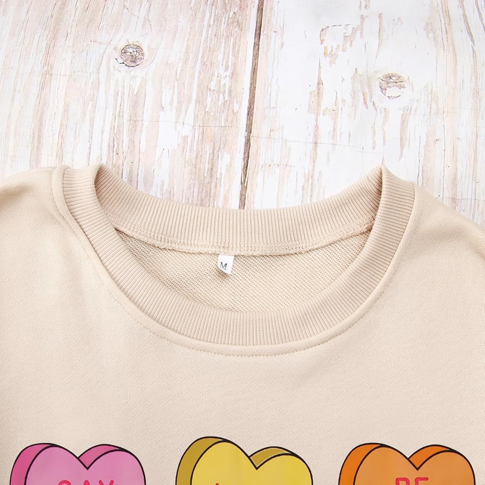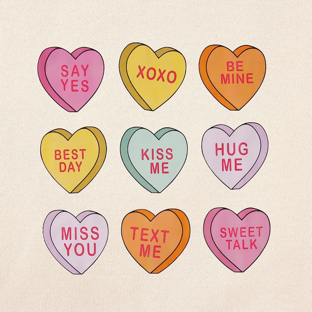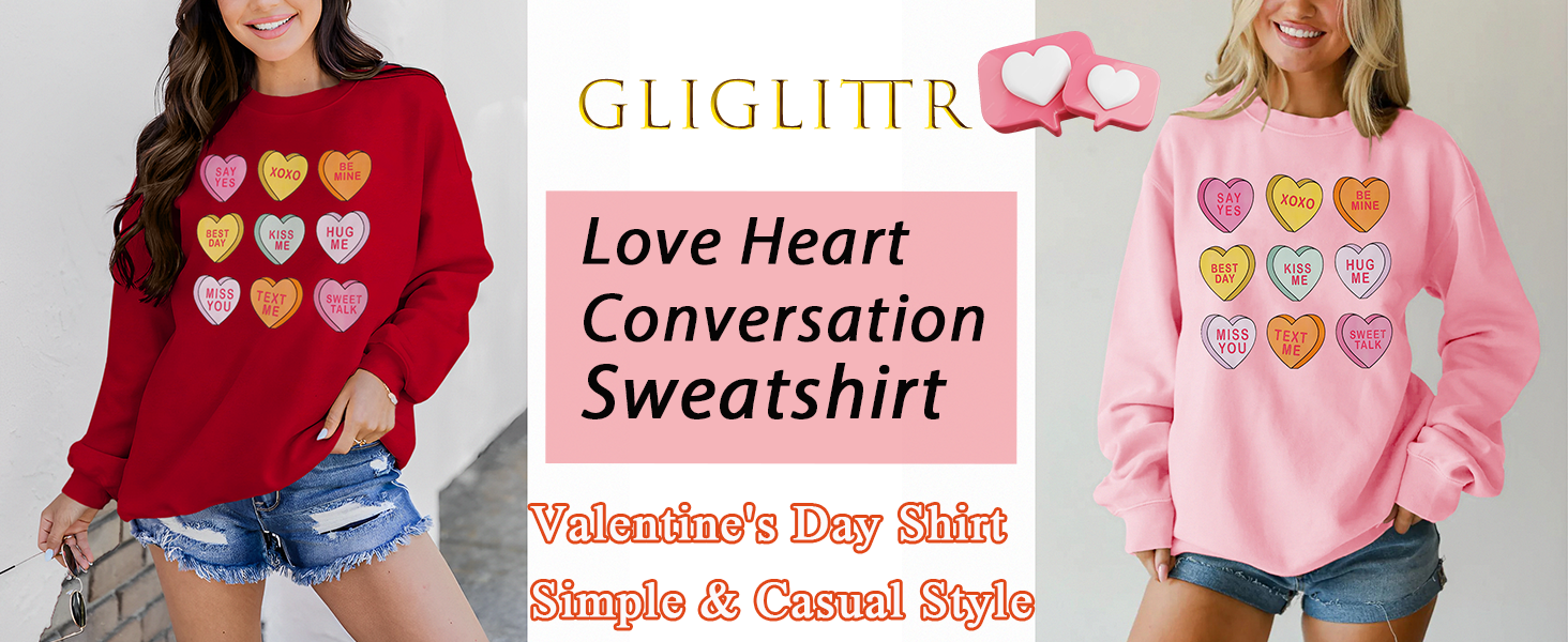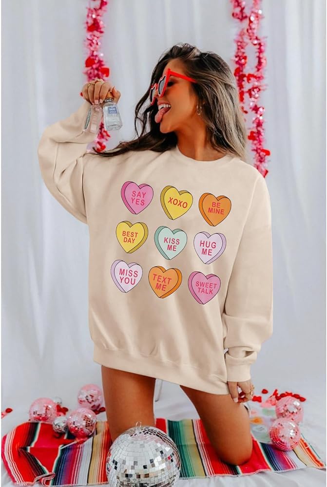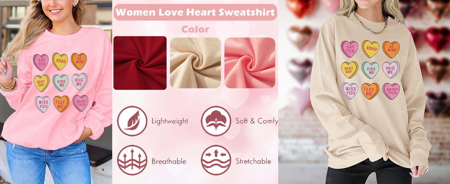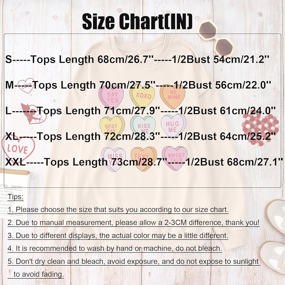 【Material】This Valentine's day sweatshirt is made of high-quality cotton blend. It's stretchable, soft and lightweight, provide you a pleasant wearing experience. Funny conversation heart crewneck pullover tops. The Valentines Day love heart graphic sweatshirt for women is perfect for spring, fall, winter.