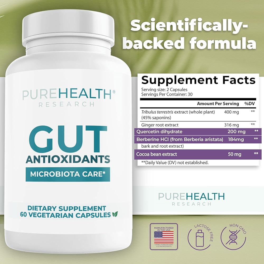 مكملات الفلافونويد لصحة الأمعاء - تنظيف الأمعاء واستعادة الهضم الجيد - مكمل مضاد للأكسدة مع البربارين والزنجبيل والكيرسيتين - تركيبة استعادة الأمعاء لتحقيق التوازن ودعم الهضم - زجاجة واحدة