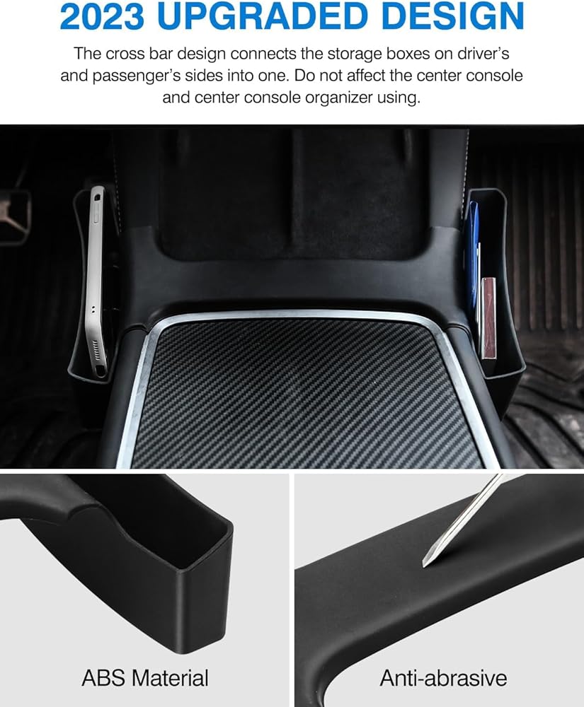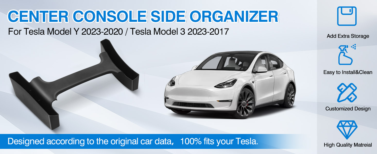 • تصميم مطور لعام 2024: يربط تصميم الشريط المتقاطع Tesla Model Y صناديق التخزين على جانبي السائق والراكب في واحد، ولن يسقط منظم جانب السيارة أبدًا، ولا يؤثر على استخدام وحدة التحكم المركزية ومنظم وحدة التحكم المركزية.