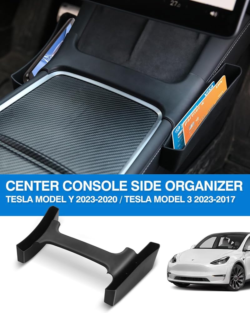 صينية تنظيم جانبية لوحدة التحكم المركزية لطراز تسلا Y 2025 2024-2020 / طراز تسلا 3 2024-2017 صندوق تخزين مسند الذراع لوحدة التحكم الجانبية نموذج Y موديل 3 ملحقات 1 قطعة