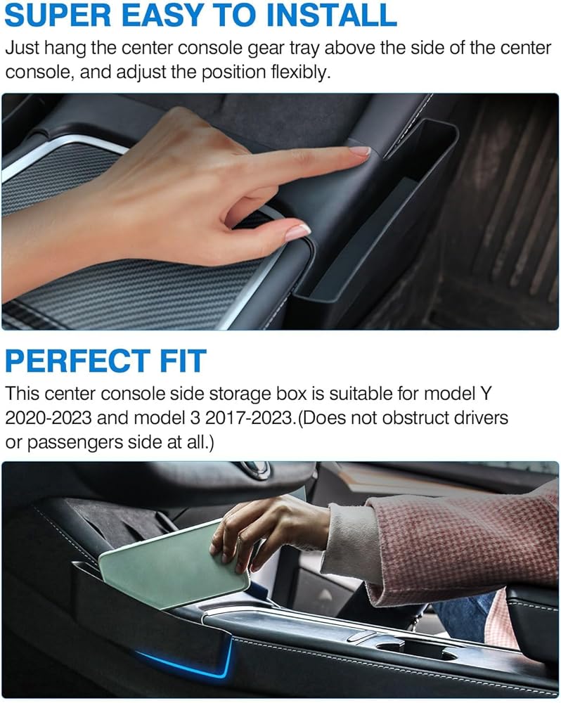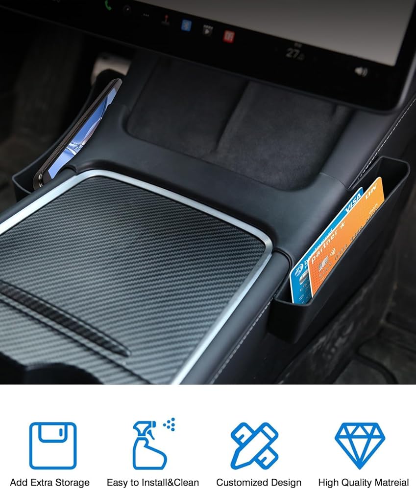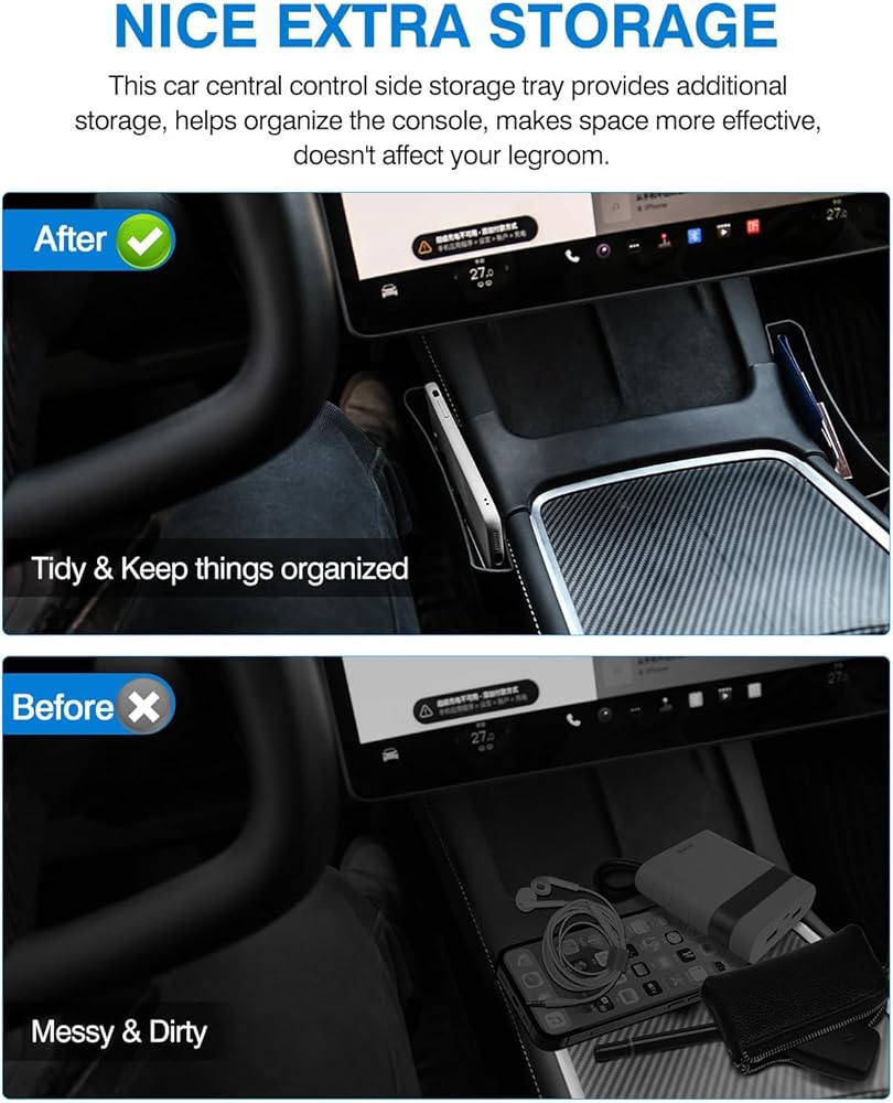 • 【أضف مساحة أكبر】: توفر صينية التخزين الجانبية للتحكم في مركز السيارة Tesla Model Y مساحة تخزين إضافية، وتساعد على تنظيم وحدة التحكم، وتجعل المساحة أكثر فعالية، ولا تؤثر على مساحة ساقيك. ملحق داخلي جميل للسيارة لحفظ الأشياء الصغيرة مثل الهواتف وكابلات الشحن والأقلام والعملات المعدنية وما إلى ذلك.