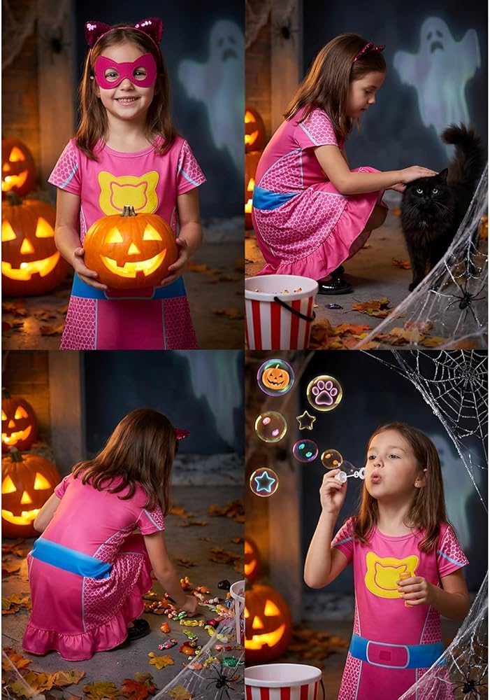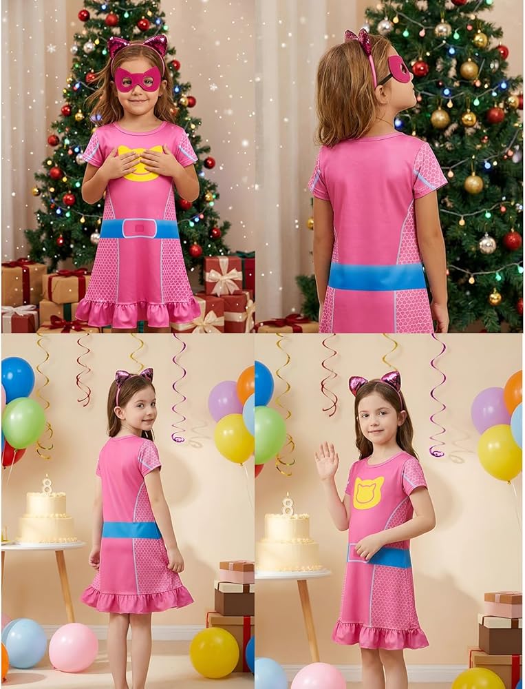 This cute superhero costume is made of milk silk, which is very comfortable and soft, suitable gift or your 4-8 year old princess at home. There are 2 colors and 4 sizes to choose from, and it comes with cat ear headbands and eye mask. It is the perfect gift for your cute princess, and she must love it, making her feel like a hero character in the movie.Unleash your princess's imagination with this adorable and playful dress-up set!