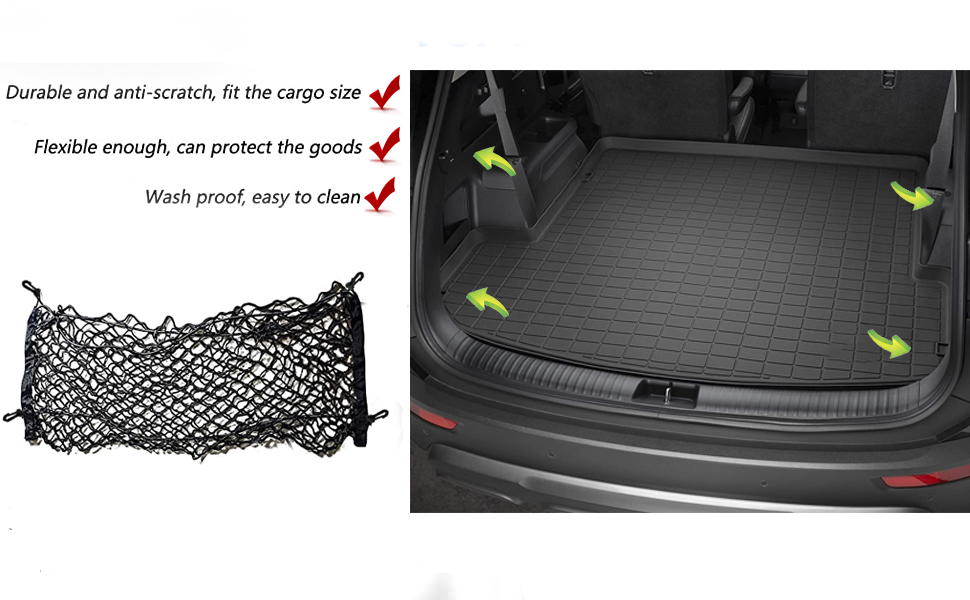 Simple But Powerful: The cargo netting is very simple but practical and cost-effective. It will accompany your car to walk through the bumps process on your trip: Help you manage groceries effectively and make your items more robust in the car back;