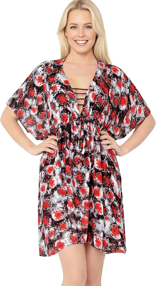 Features : Women's swimsuit bikini bathing suits cover up for swimwear featuring irregular hem, effortless drape, relaxed fit, airy, soft and comfortable, very flowy, lightweight, allover printed, oversized wrap, casual style, deep v neck, opening front, adjustable drawstrings, elastic waist, self tie closure, kimono short sleeves, batwing, mini cocktail party dress, above knee length, fit and flare robe, beach tunics, easy to put on or take off