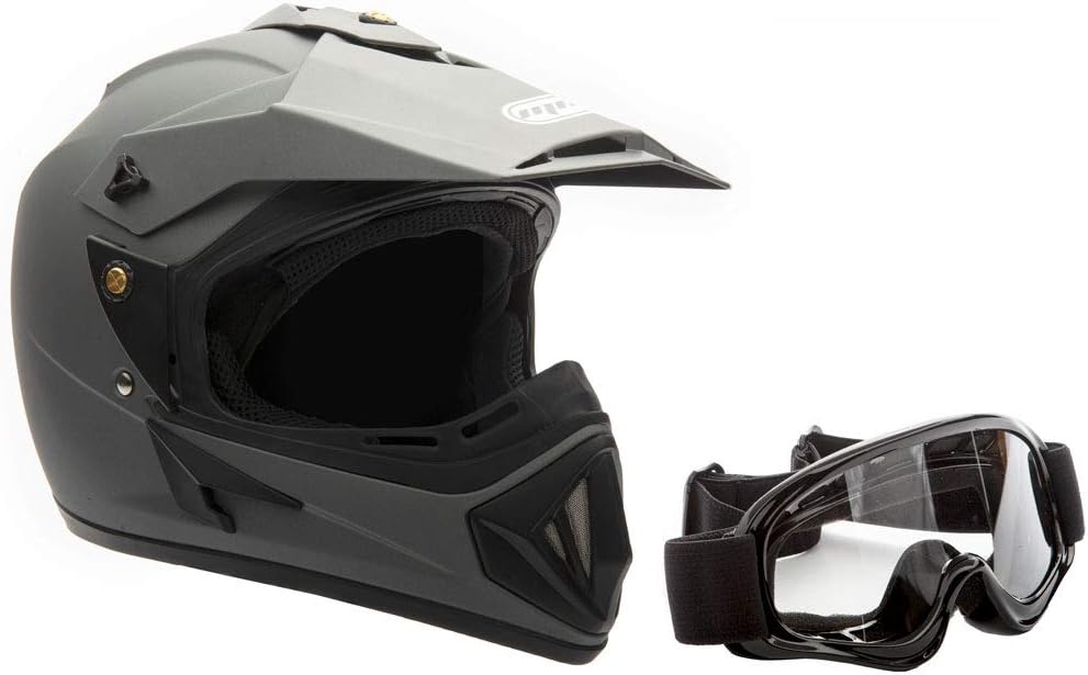 خوذة MMG 30 للبالغين للدراجات النارية على الطرق الوعرة DOT - MX ATV Dirt Bike Motocross UTV - رمادي مطفي مسطح، مقاس X-Large مع نظارات ركوب الخيل
