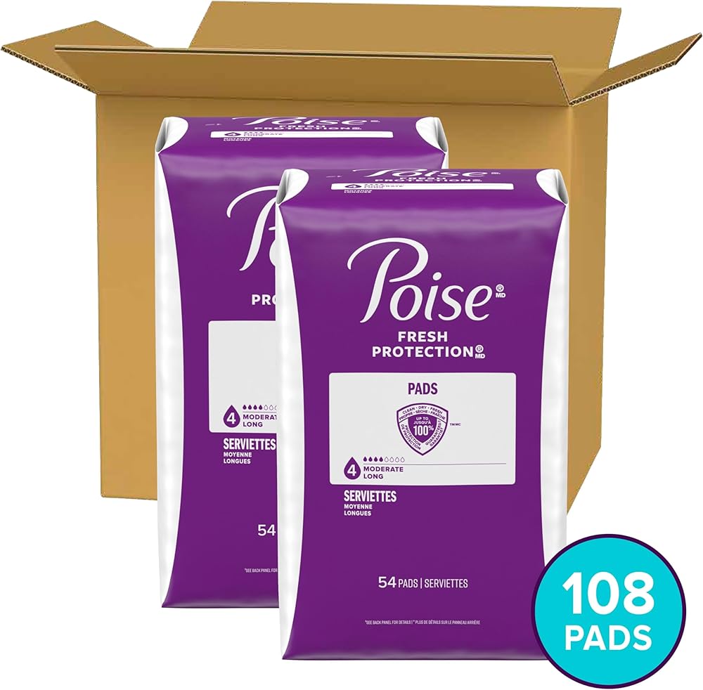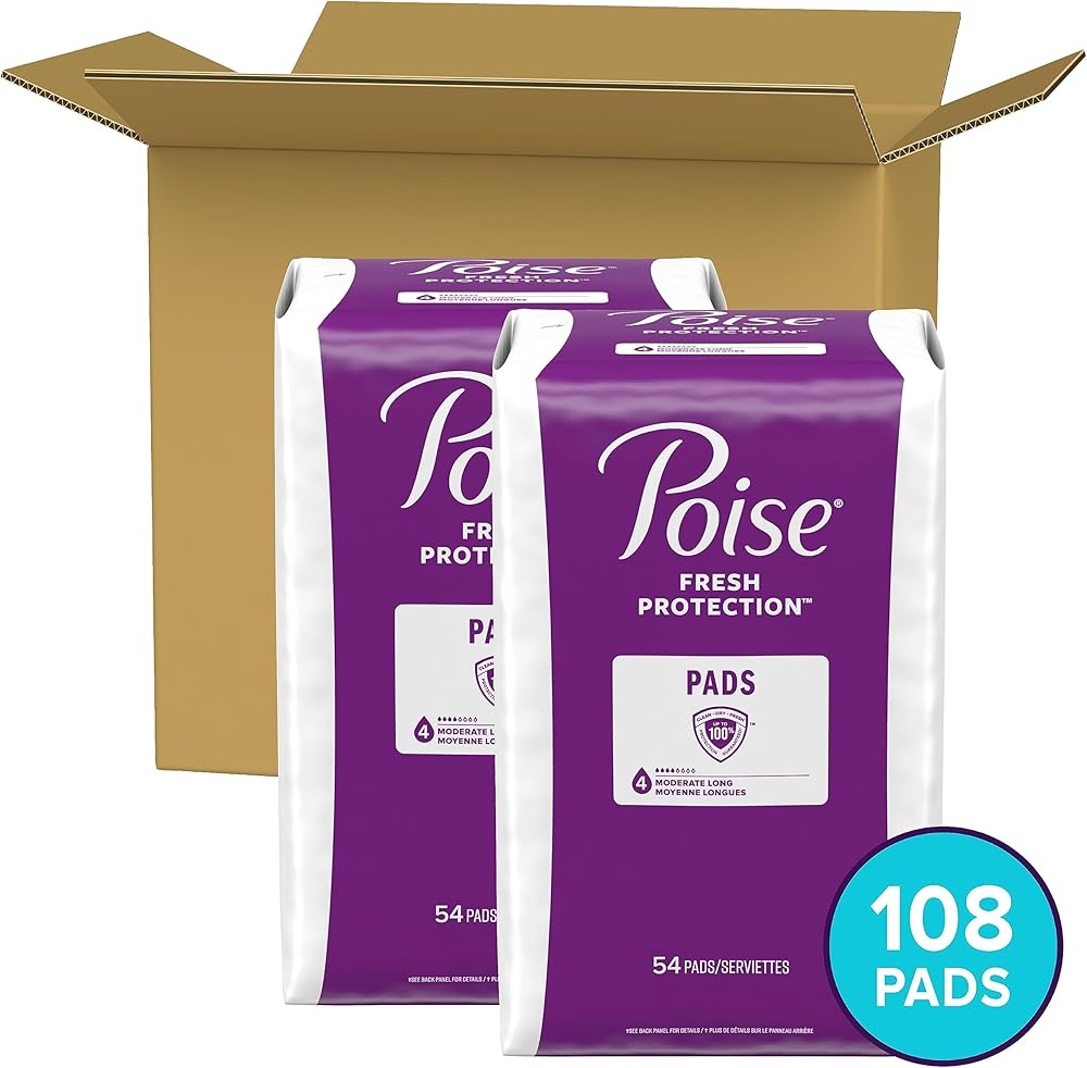 POISE INCONTINENCE PADS: 108 incontinence and postpartum bladder leak pads, 4 drop moderate absorbency, regular length (108 pads total)