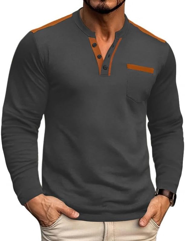 • تتميز قمصان هينلي الرجالية بنمط أنيق من الطبقات، وأكمام طويلة، وجيب أمامي، ومقاس عادي، وتصميم بثلاثة أزرار يضيف عنصرًا من التفاصيل مع توفير طراز مريح وسهل، هو تي شيرت كلاسيكي حقيقي للرجال.