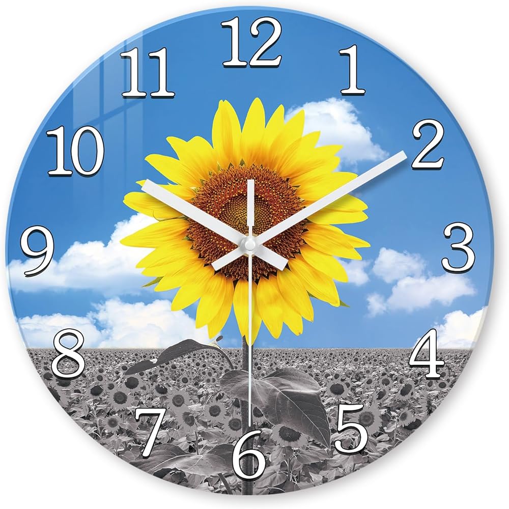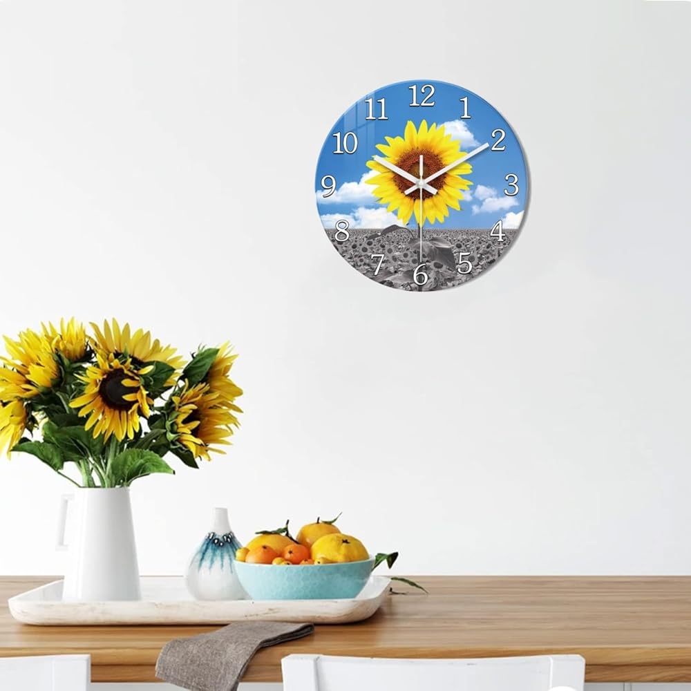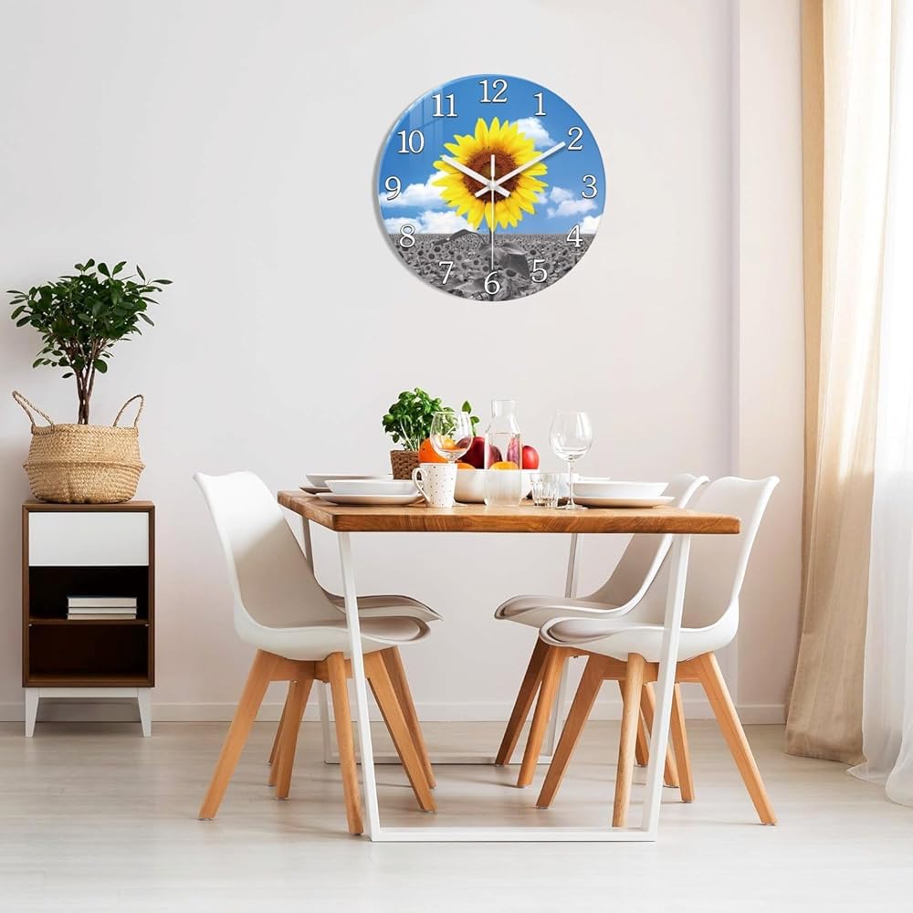 2.[Material] - Modern wall clock made of tempered glass dial, metal hands, bright and clear color, frameless design.