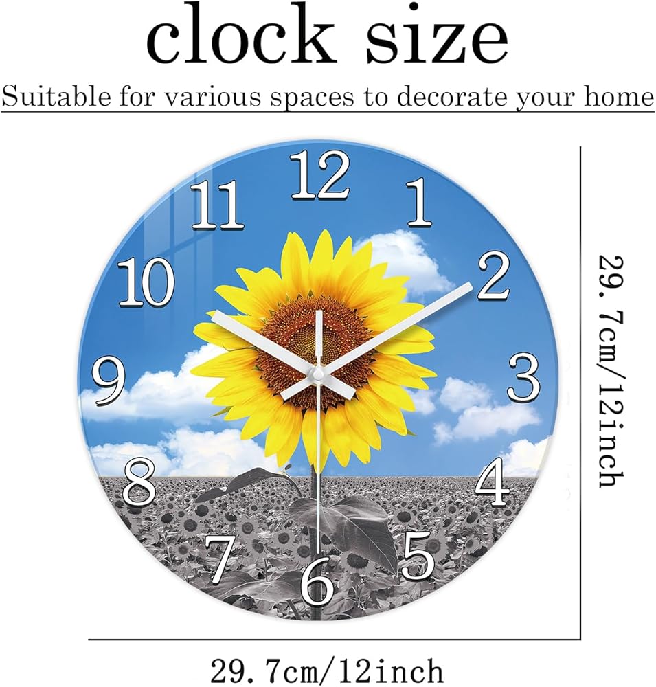 1.[Size] - Wall mount clock is 12 inches x 12 inches, HD glass, frameless round analog wall clock, decorative wall clocks for living room, bedroom, kitchen, bathroom, classroom, guest room, office, restaurant, cafe, dining room, librarie brings a bit of art into the room.