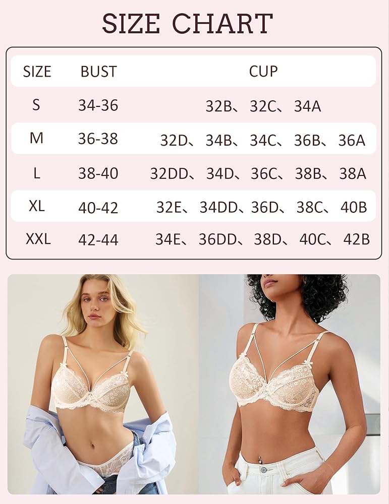 • يرجى الرجوع إلى مخطط المقاسات. تتضمن العبوة: حمالة صدر دانتيل * 15 (بدون سراويل داخلية)