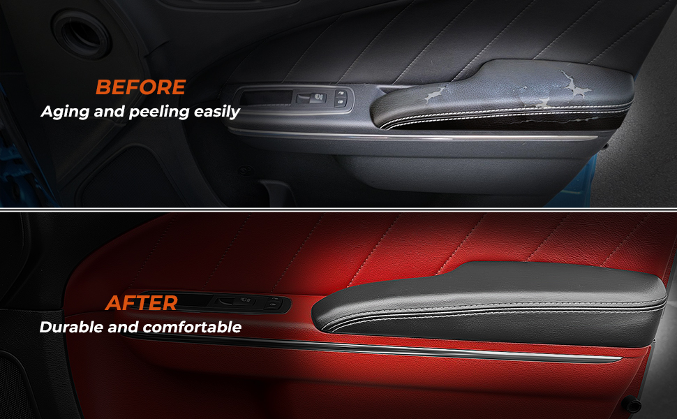 【متين ومريح】مسند ذراع الباب الداخلي الخاص بنا مصنوع من جلد مقاوم للاهتراء مع طبقات فرنسية مزدوجة، أكثر متانة وراحة ويوفر مظهرًا فاخرًا ومضاد للخدش ومقاوم للماء وسهل التنظيف.