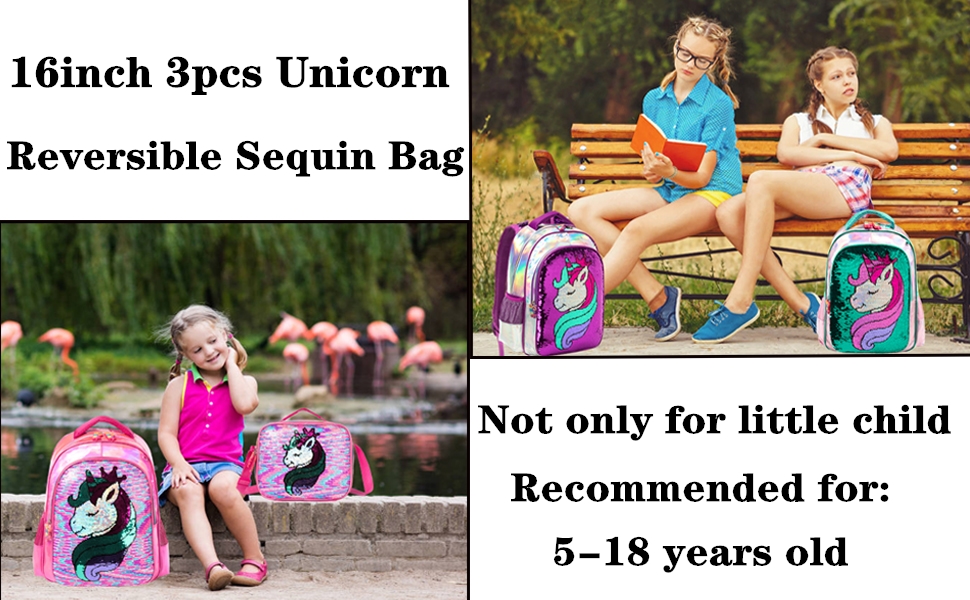 [Unicorn Backpack Quality]Lightweight Design,Glitter Reversible Sequin material made,have more fun for your kids,according to your mood to change backpack style.Adjustable padded shoulder straps offer support and comfort.Water resistant,durable zipper with special cute zipper head