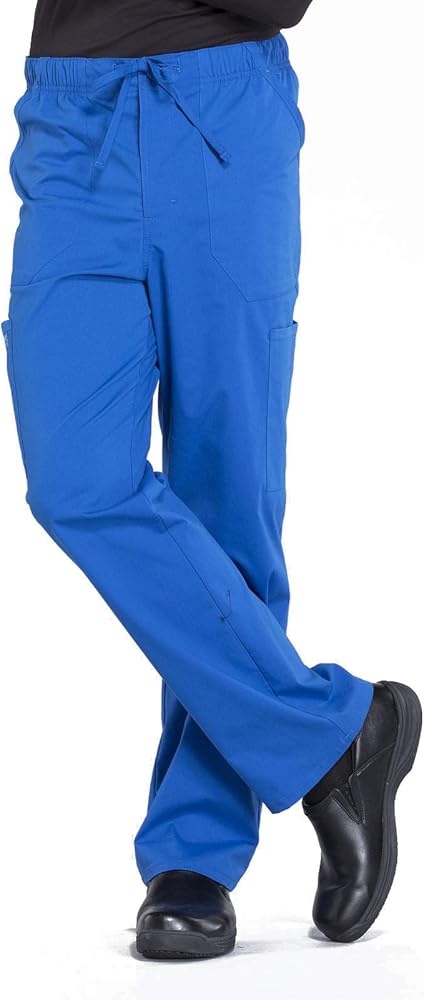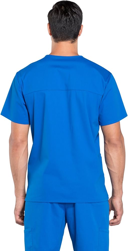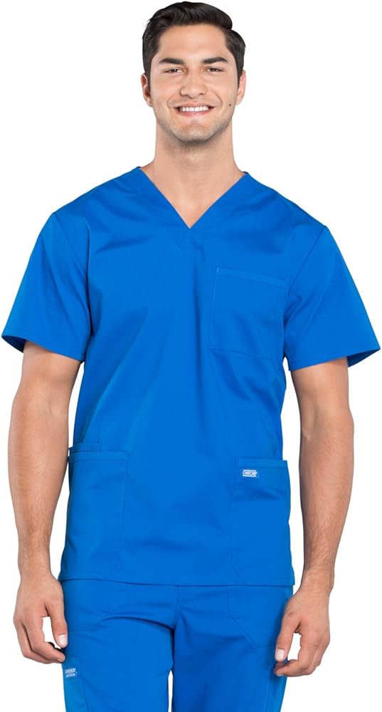 Workwear Professionals SCRUB TOP PRODUCT DESCRIPTION: A Men's Traditional fit V-neck top features a chest pocket, two patch pockets, a cell phone pocket, a hidden instrument loop, back yoke and side vents. Center back length: 29". SCRUB BOTTOM PRODUCT DESCRIPTION: A Men's Traditional fit tapered leg pant with a functional drawstring and elastic waistband features a zip fly with button closure, front patch pockets, two cargo pockets and a back pocket. Inseam: 29 1/2”