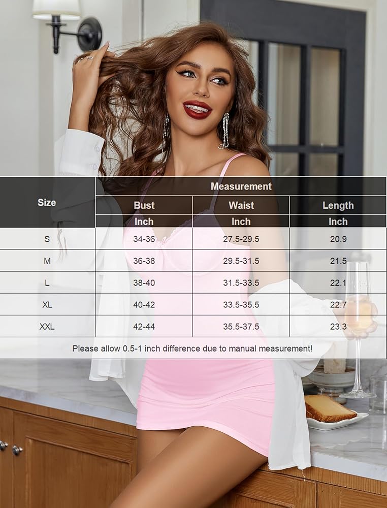 ❤ثوب نوم مثير: تتميز الملابس الداخلية سهلة الارتداء بتصميم نحيف، ورقبة على شكل حرف V مثيرة بدون أكمام لمظهر رائع، وتجعلك أكثر جاذبية ورشاقة في الليل. التمثال النصفي مزدوج الطبقات مع مودال ودانتيل لضمان التغطية الكاملة دون أي رؤية.