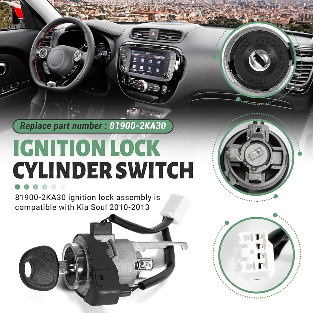 مفتاح أسطوانة قفل الإشعال متوافق مع Kia Soul، Hatchback، 2010 2011 2012 2013#Replace 81900-2KA30 مجموعة قفل الإشعال مع مفتاحين، قفل توجيه مجموعة المفاتيح الفرعية 819002KA30
