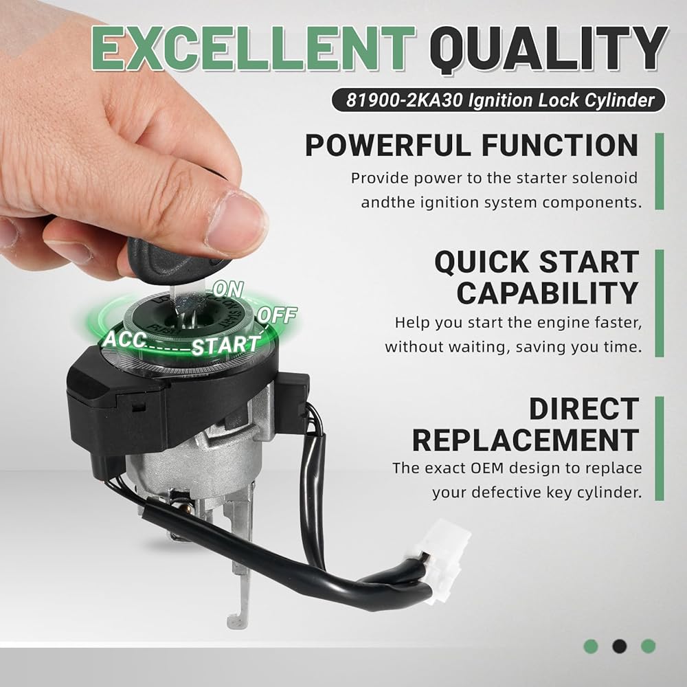 【أداء جيد】توفر أسطوانة الإشعال 81900-2ka30 الطاقة للملف اللولبي للمبتدئين ومكونات نظام الإشعال، مع تصميم فتحات قفل مضادة للانزلاق، وأداء عمل أفضل، وعمر خدمة أطول.