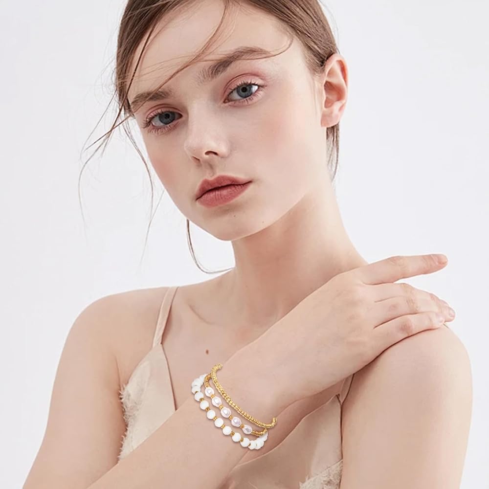 • Gold Bracelet Stack: Each bracelet can be worn independently, revealing remarkable elegance in its simplicity, suitable for a variety of everyday outfits. At the same time, they can be cleverly mixed and matched to create rich visual layers and unique flavours that express the wearer's personality and style. Adjustable beaded bracelets are the perfect finishing touch, adding interest to any outfit and making every ensemble a surprise