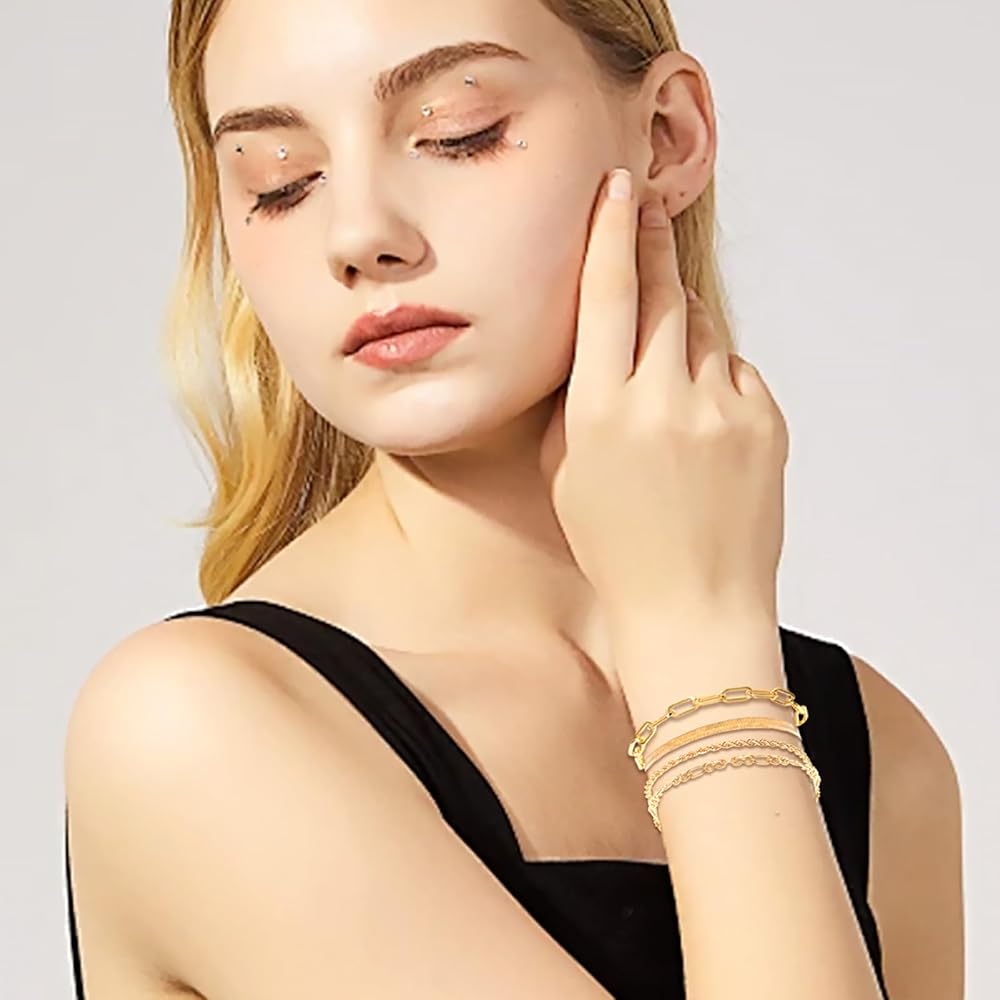 • Ideal Present: The gold bracelet sets is the finishing touch to any outfit and blends perfectly with both everyday wear and special occasion dressing. With its timelessly classic and unique design, this bracelet is perfect for the modern woman who seeks individual style. It is the ideal companion for everyday wear, parties, birthday parties and any other memorable occasion. And as a present to yourself, it's a great way to show how much you value yourself,you deserve it