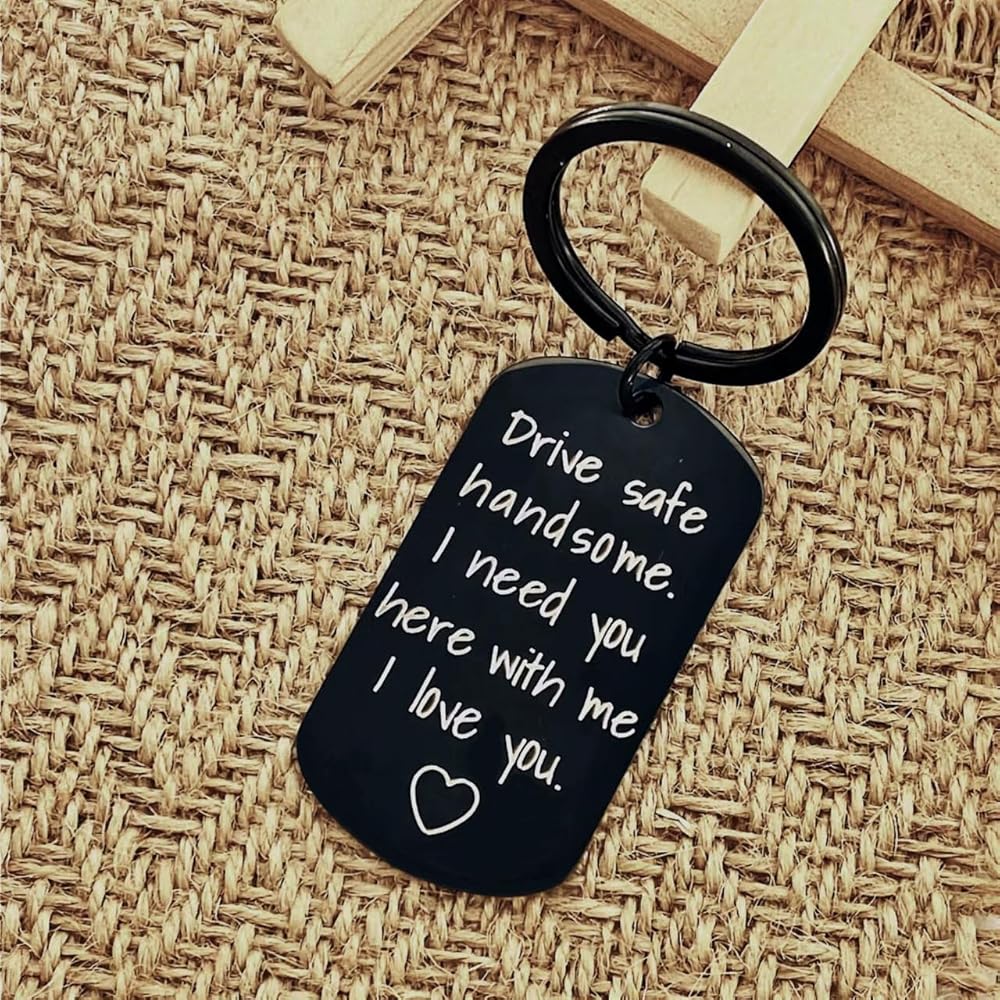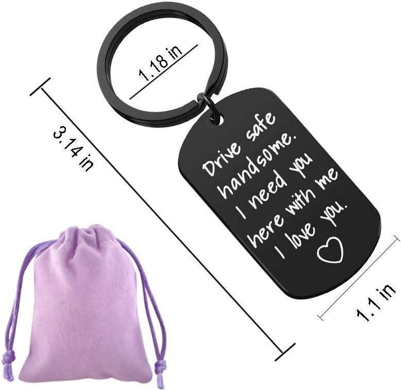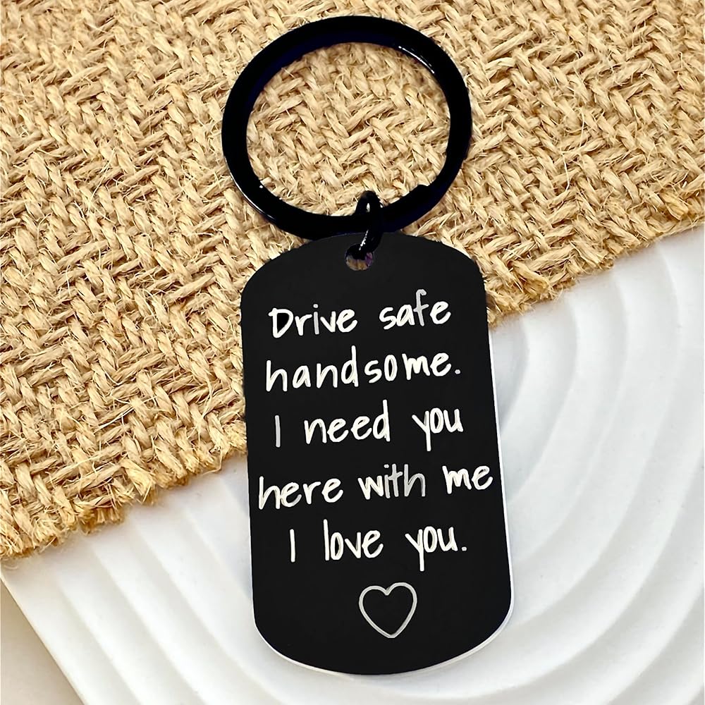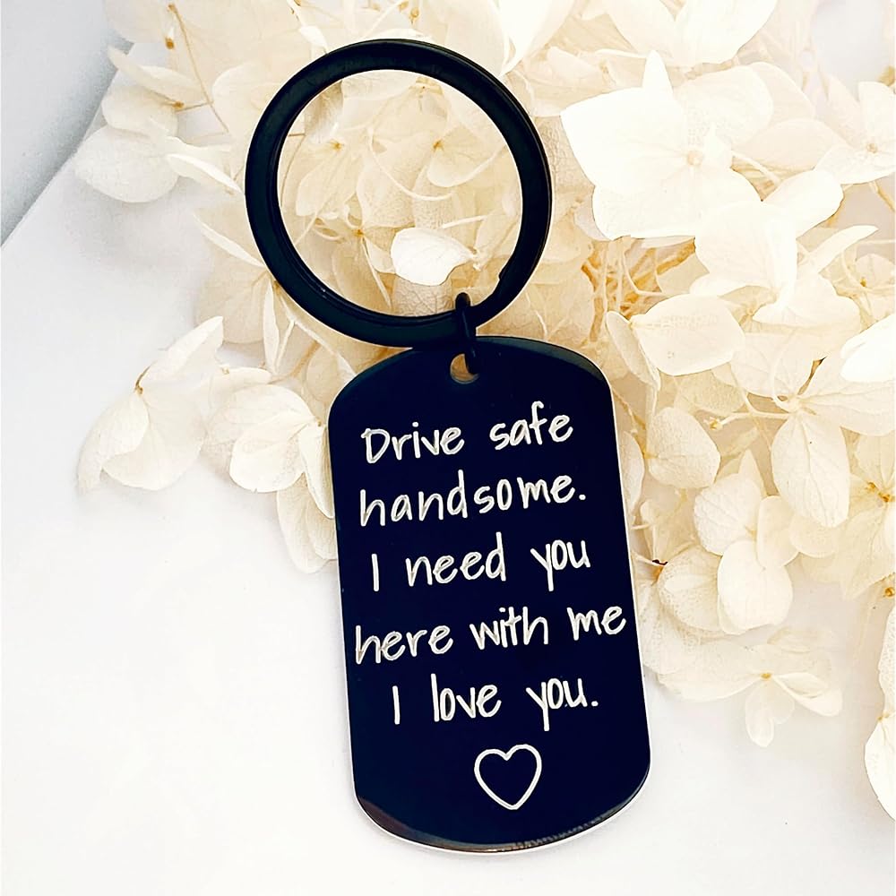 【Drive Safe Keychain for Him】The keychain is engraved with "Drive safe handsome. I need you here with me. I love you."