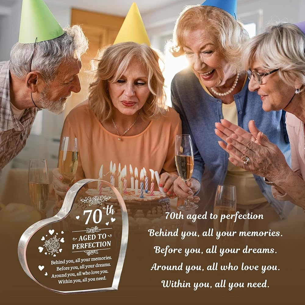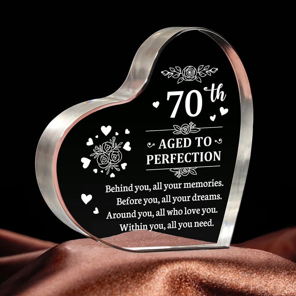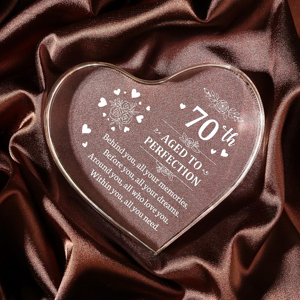 هدية مثالية لعيد الميلاد السبعين للنساء: احتفل بعيد ميلاد بارز مع تذكار عيد الميلاد الأكريليكي المذهل على شكل قلب! مثالية لاحتفالات عيد الميلاد السبعين، إنها هدية من القلب ستترك انطباعًا دائمًا.