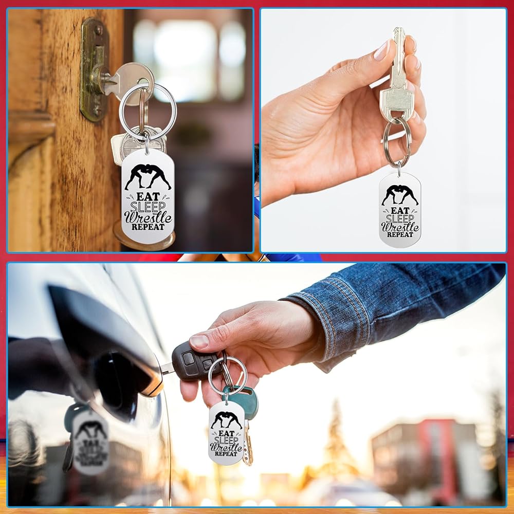 Theme Design: these inspirational keychain stand out for their unique wrestling pattern, and the text "WRESTLING" is added, which shows the vitality and enthusiasm of wrestling, so that you can also feel the charm of wrestling during use