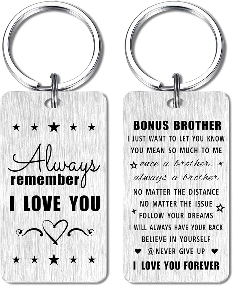 هدية إضافية للأخ - أفضل سلسلة مفاتيح إضافية للأخ منقوشة "الجانب الأمامي: تذكر دائمًا أنني أحبك، الجانب الخلفي: إلى أخي الإضافي، أريد فقط أن أخبرك أنك تعني الكثير بالنسبة لي، مرة أخ، دائمًا أخ، بغض النظر عن المسافة، بغض النظر عن المشكلة، نحن أفضل الإخوة الإضافيين إلى الأبد، سأدعمك دائمًا، ثق بنفسك، لا تستسلم أبدًا، أحبك دائمًا.