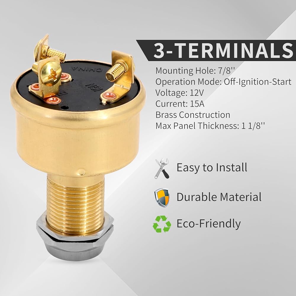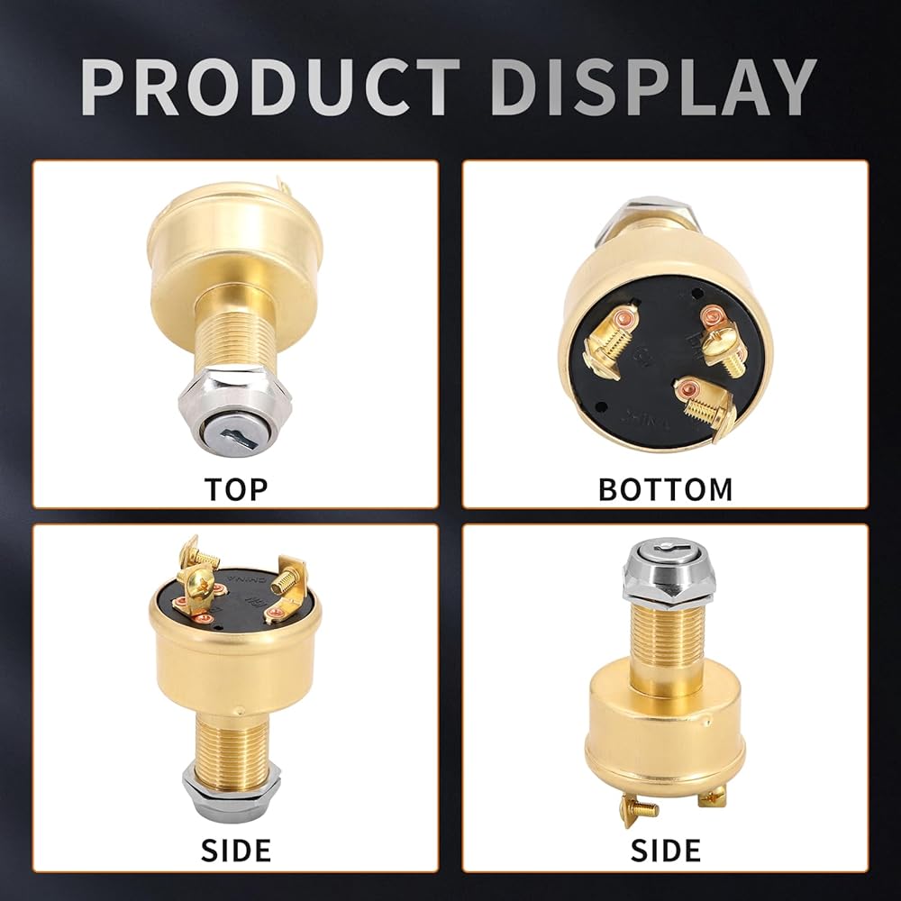 【المواصفات】المواقع: 3 محطات؛ فتحة التركيب: 7/8 بوصة؛ وضع التشغيل: إيقاف التشغيل-الاشتعال؛ الجهد االكهربى: 12 فولت؛ الحالي: 15A؛ البناء النحاسي؛ أقصى سمك للوحة: 1 1/8 بوصة.